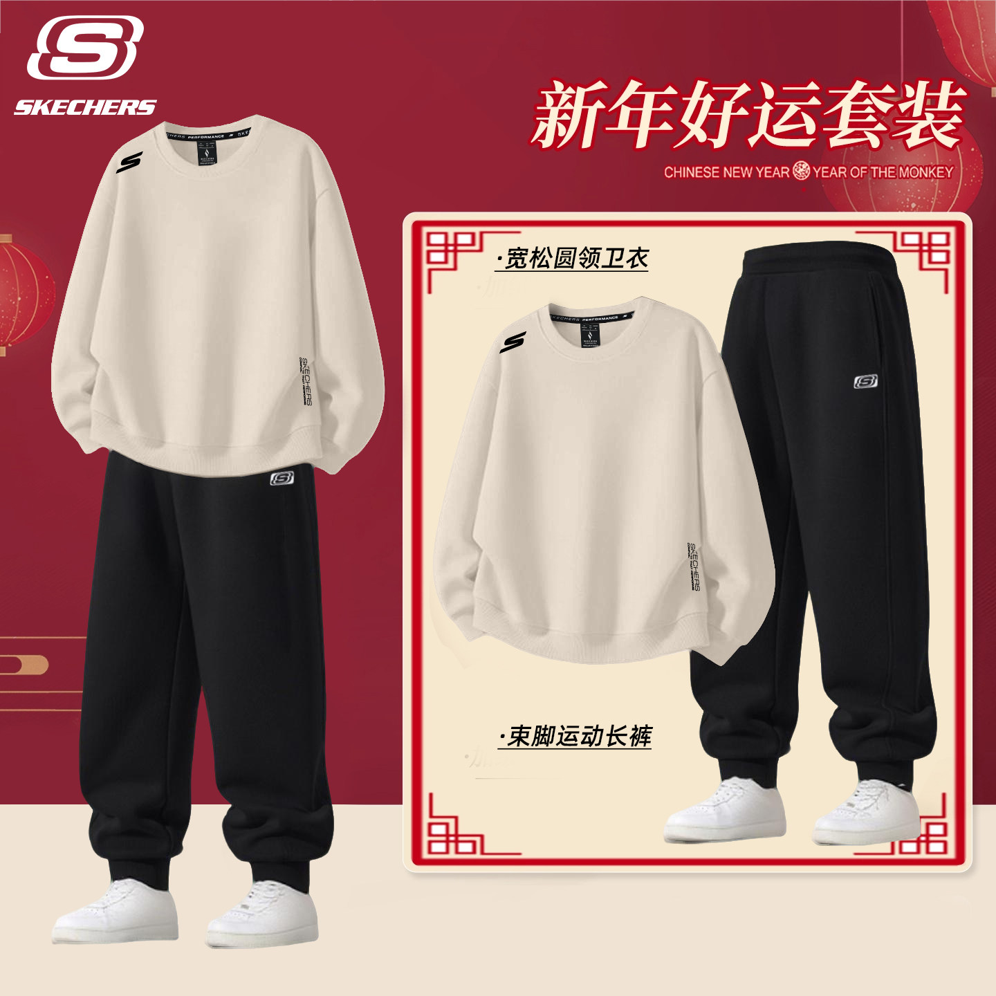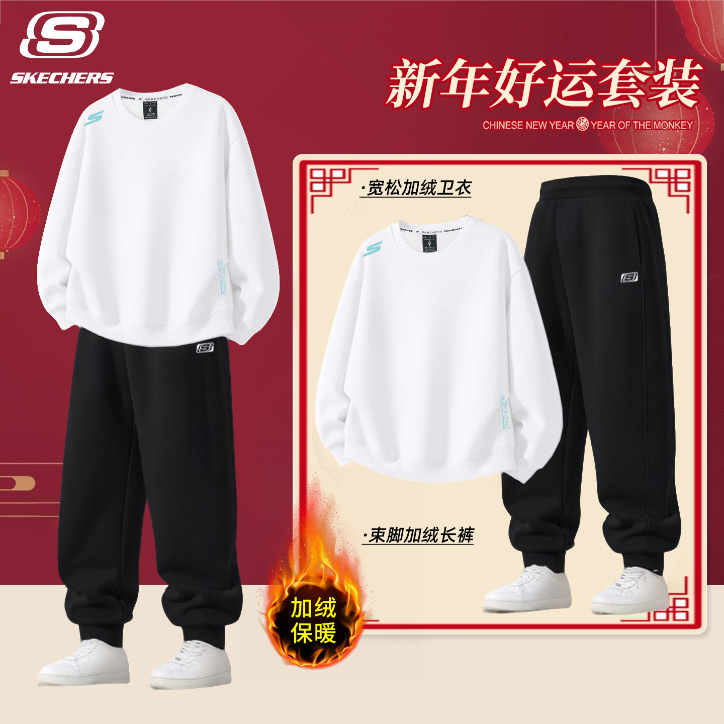 斯凯奇加绒圆领卫衣束脚裤套装男女款加厚百搭冬装运动休闲款男装