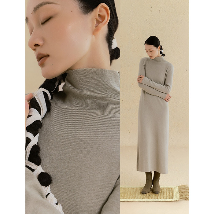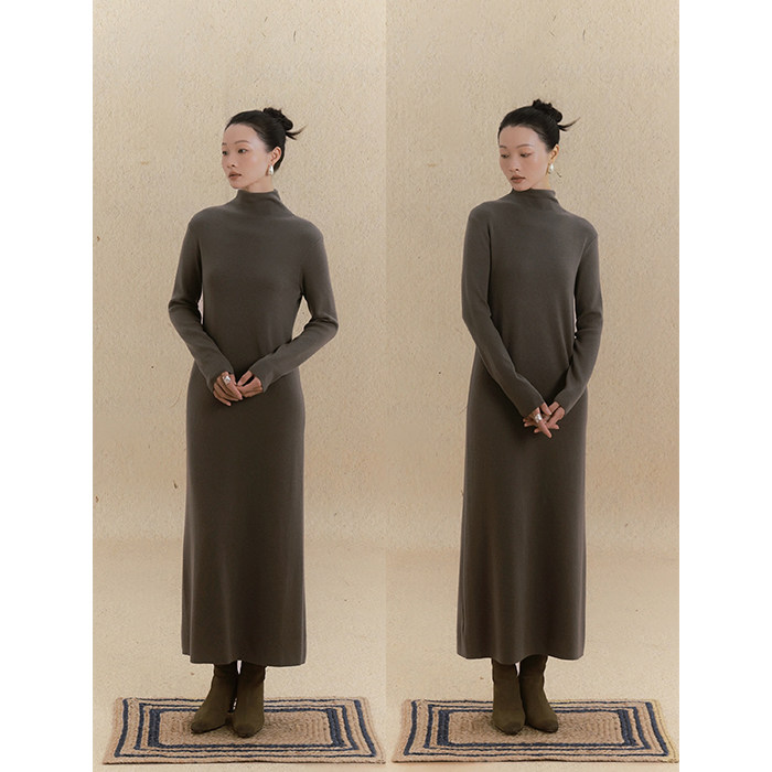 小鹿弥雅《蒹葭》内搭万金油!高领长袖打底针织长款连衣裙秋冬