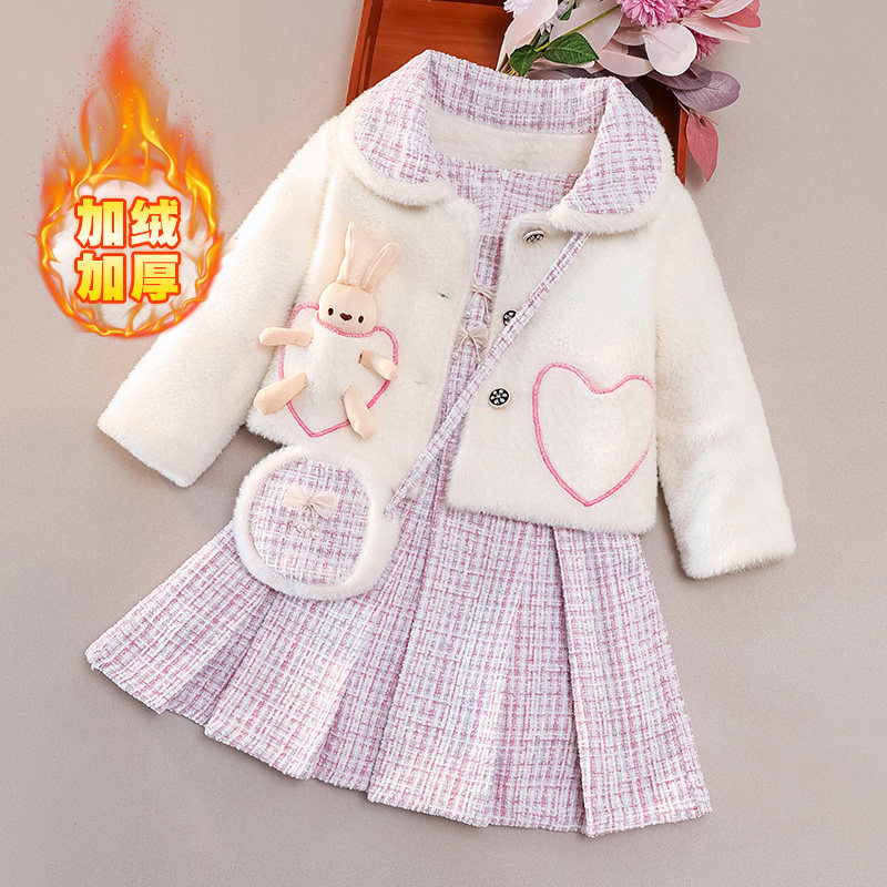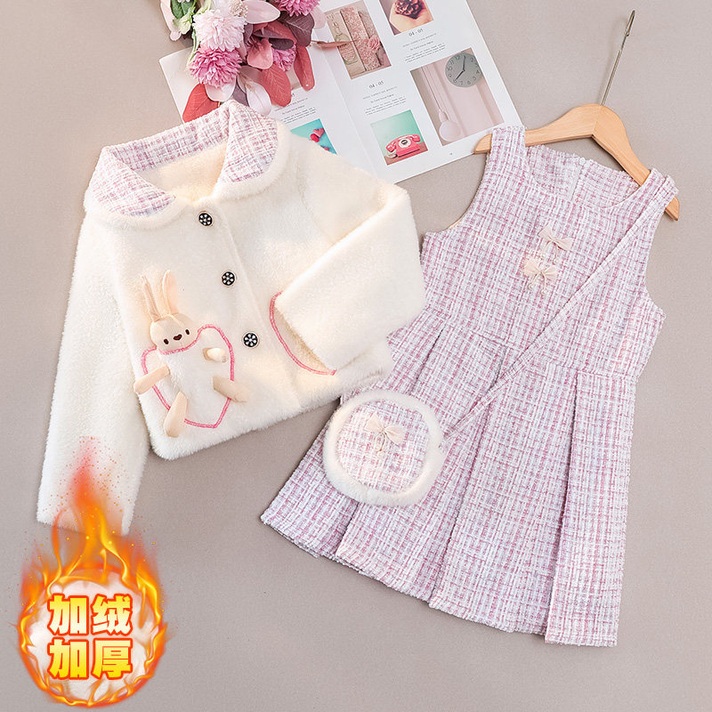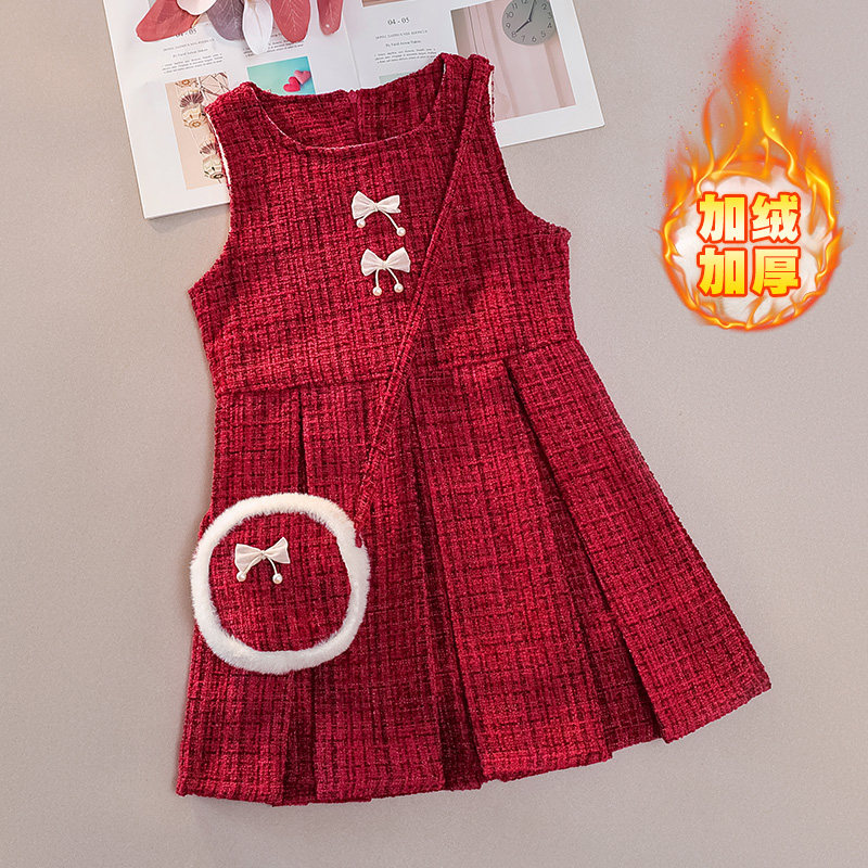女童冬装加厚连衣裙冬裙秋冬洋气儿童女孩公主裙冬季套装裙过年裙