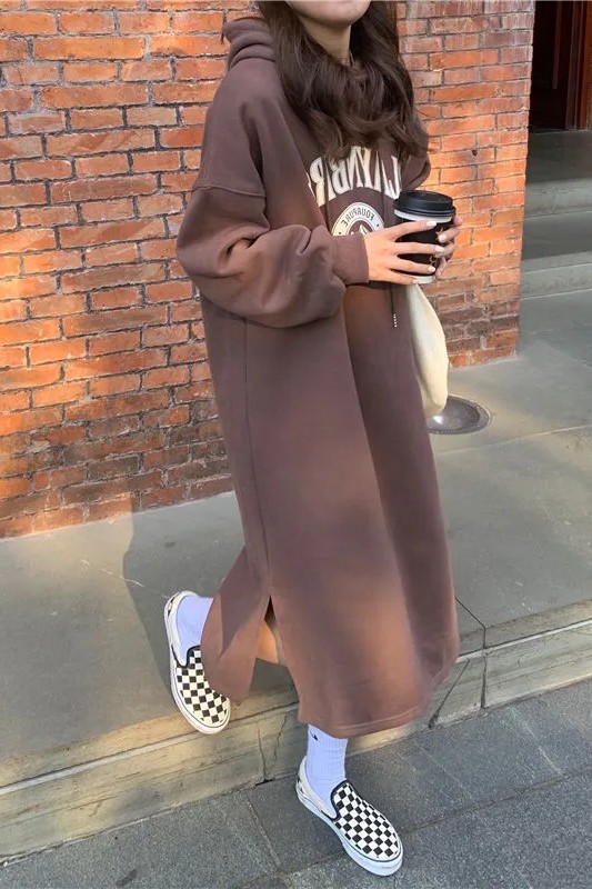 大码卫衣裙秋冬季加绒加厚300斤连帽小个子长款胖mm连衣裙韩版ins
