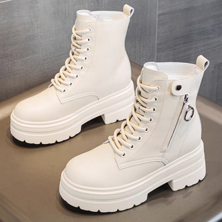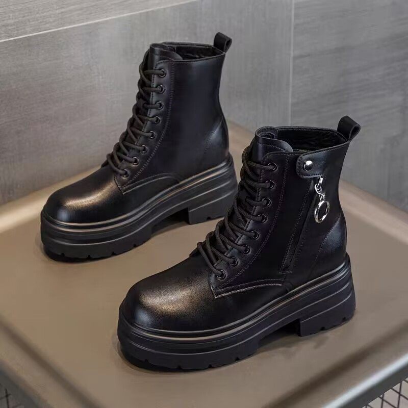 爆款小个子8cm内增高马丁靴女2025新款秋冬季加绒真皮厚底短靴