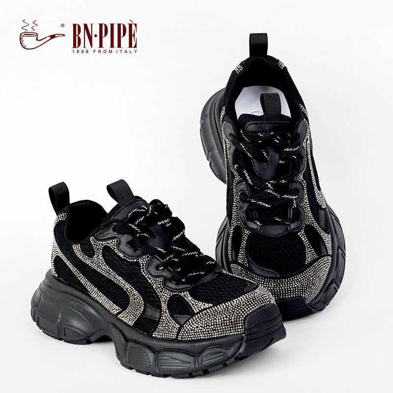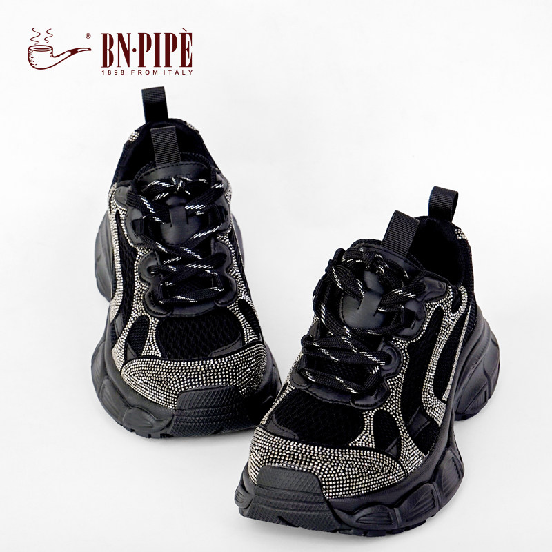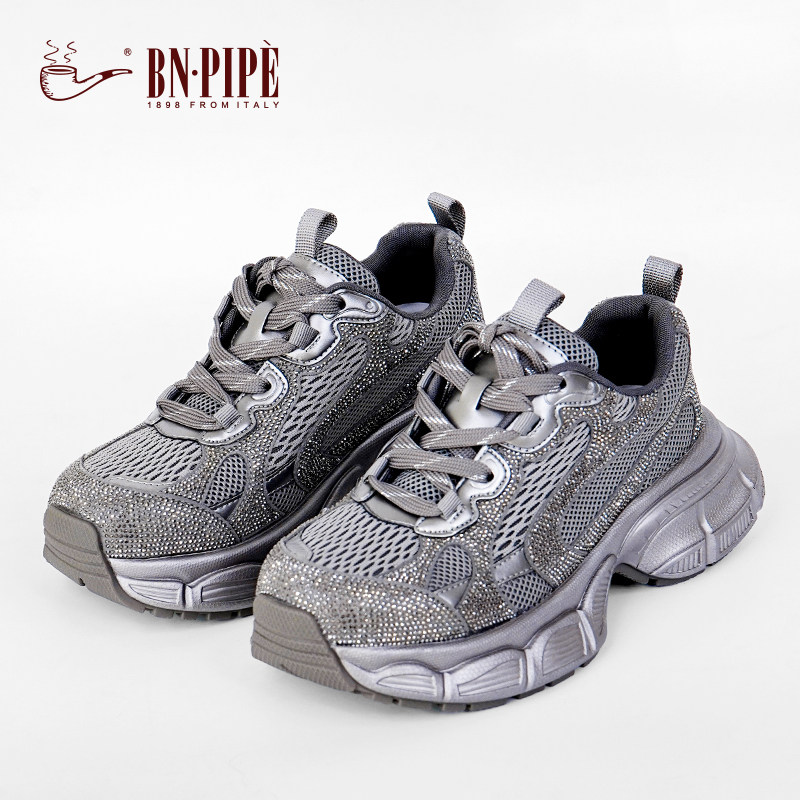 百年烟斗网面透气老爹鞋2025新款女款厚底运动休闲鞋夏季黑色女鞋