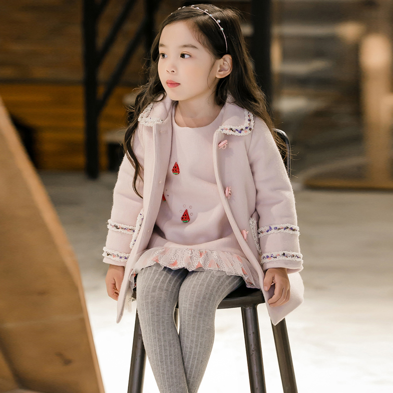 女童秋冬新款羊毛呢大衣小香风中长款加棉加厚中大女童保暖外套