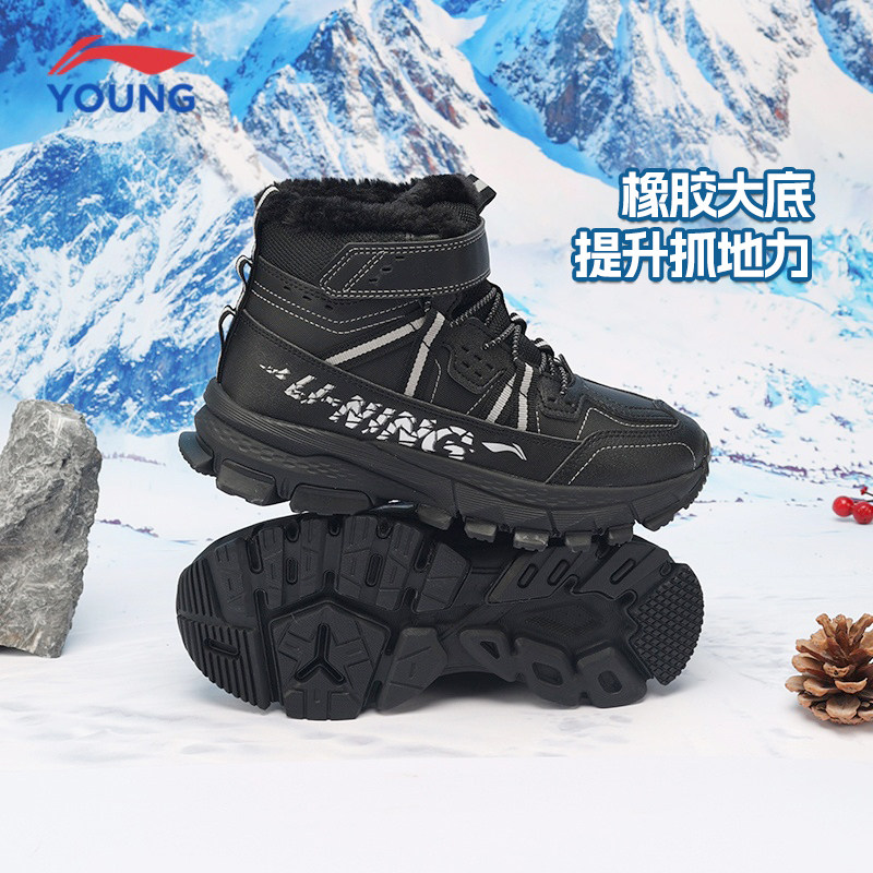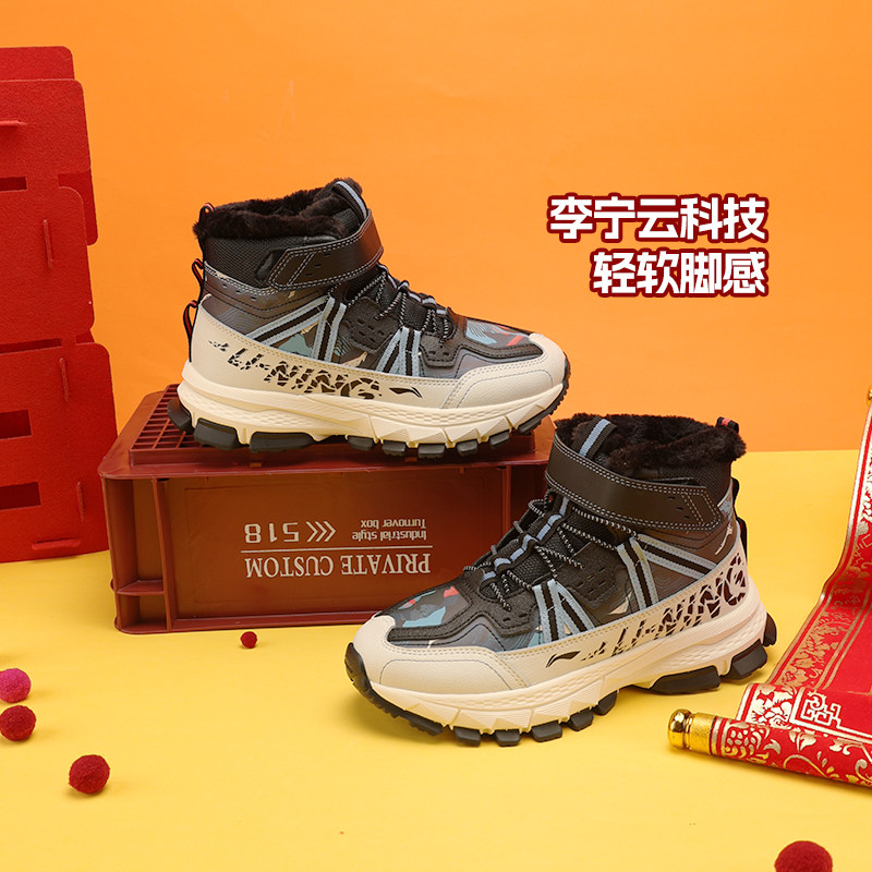 李宁儿童2025冬季新款男童女童雪地靴加绒运动鞋加厚保暖防滑棉鞋