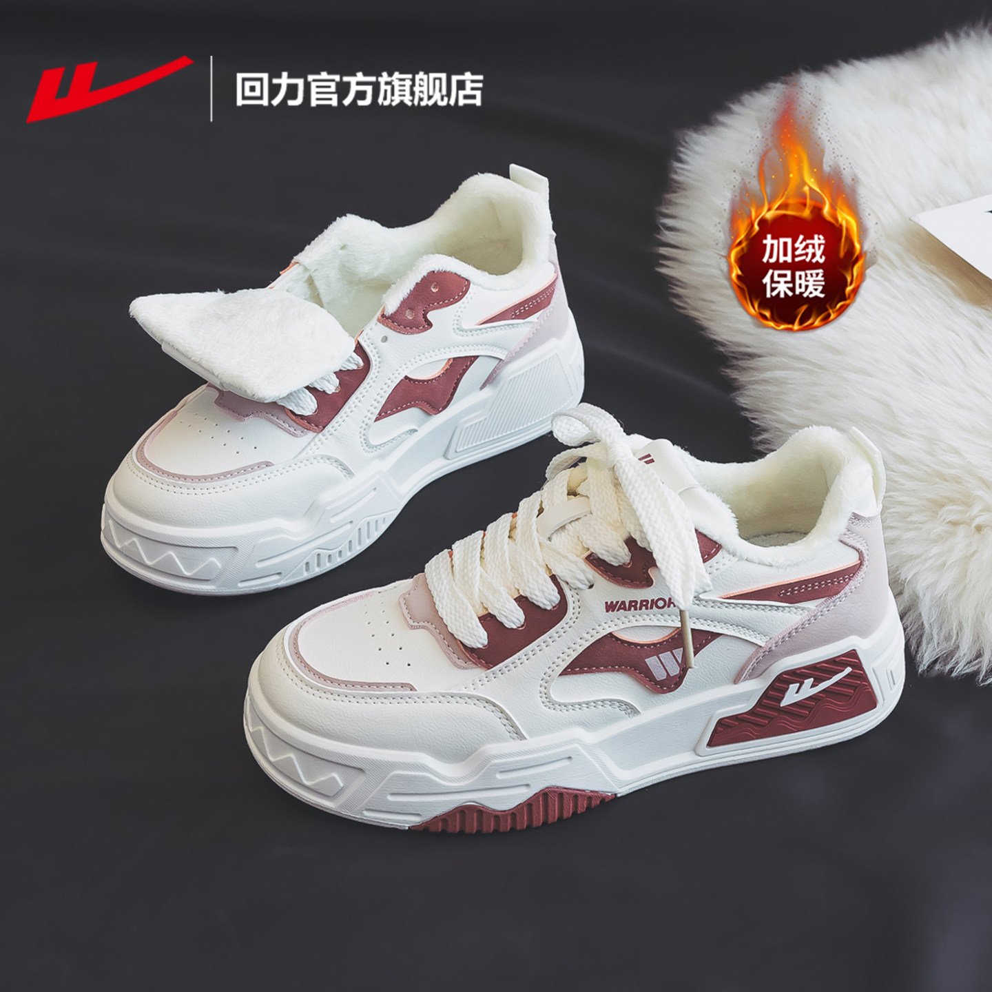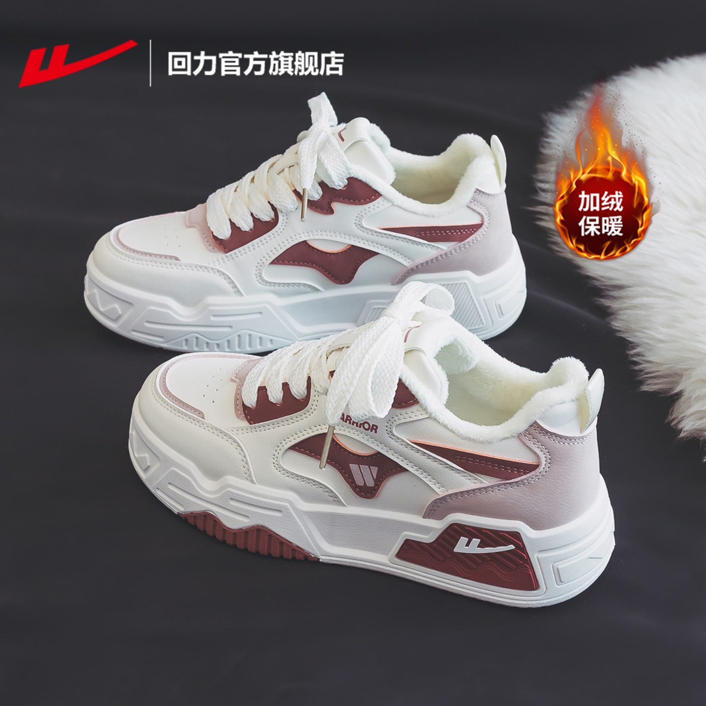 回力官方旗舰店加绒女鞋板鞋女款2025爆款冬季棉鞋女厚底运动鞋女