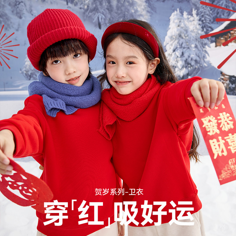 红豆男童红色卫衣女童上衣2026马年本命年过年服加绒儿童拜年服冬