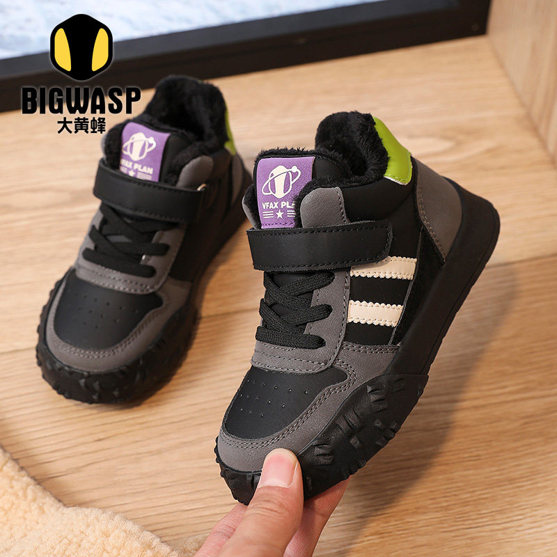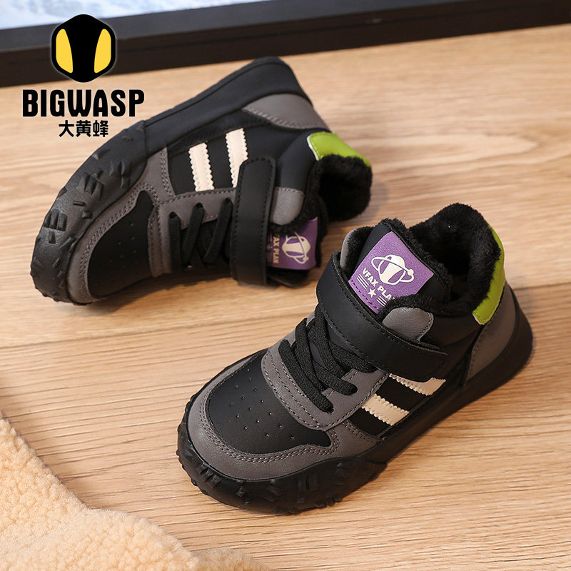 311线报网描述:大黄蜂童鞋儿童休闲加绒板鞋冬季新款男童鞋