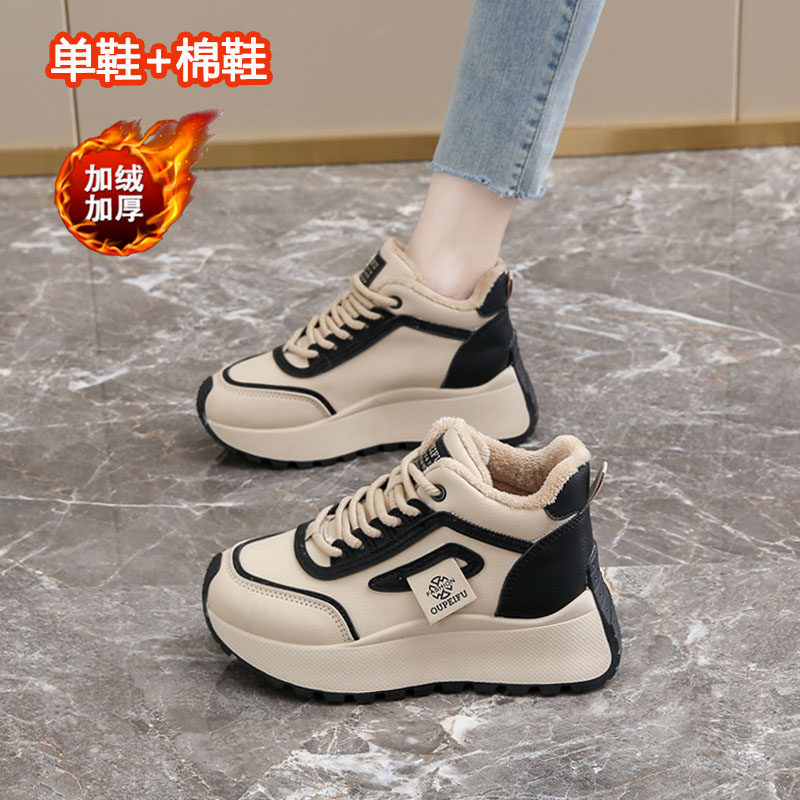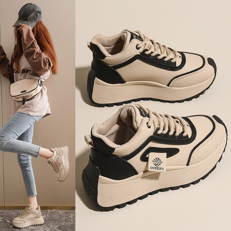 踩屎感34码小个子内增高运动鞋女秋冬7CM超厚底配裙子防水老爹鞋