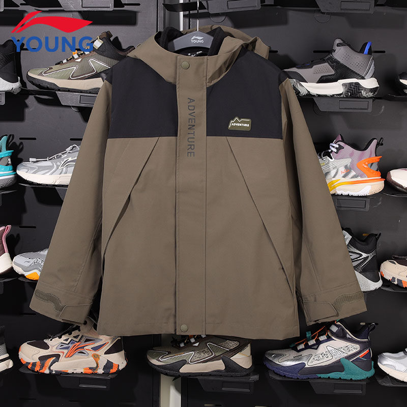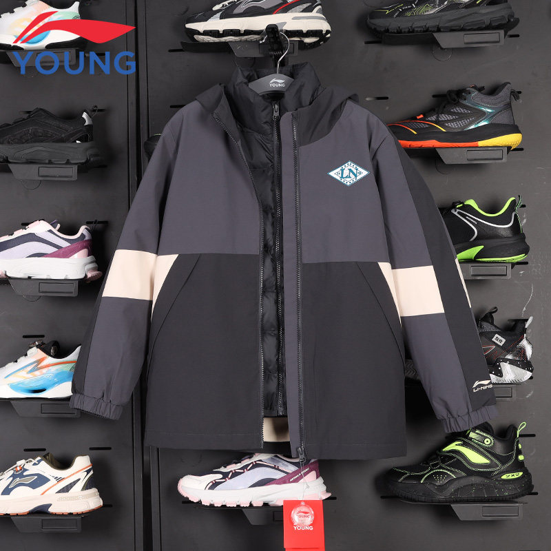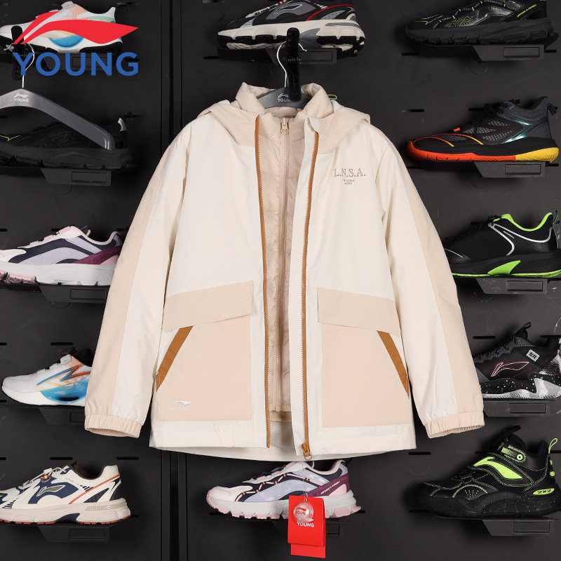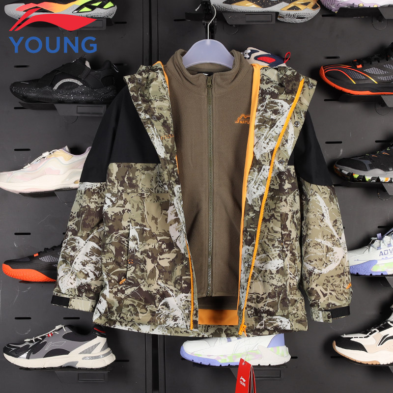 李宁儿童羽绒服三合一风衣男童外套秋冬防风保暖冲锋衣女童上衣
