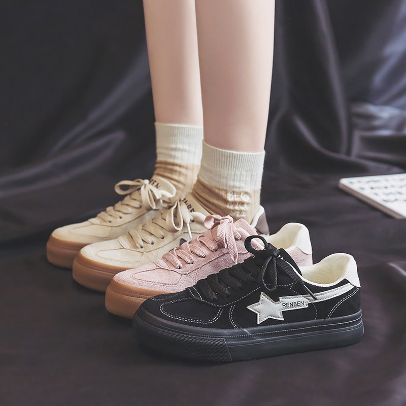 人本德训鞋女2026春季新款女鞋透气粉色板鞋学生软底不累脚帆布鞋