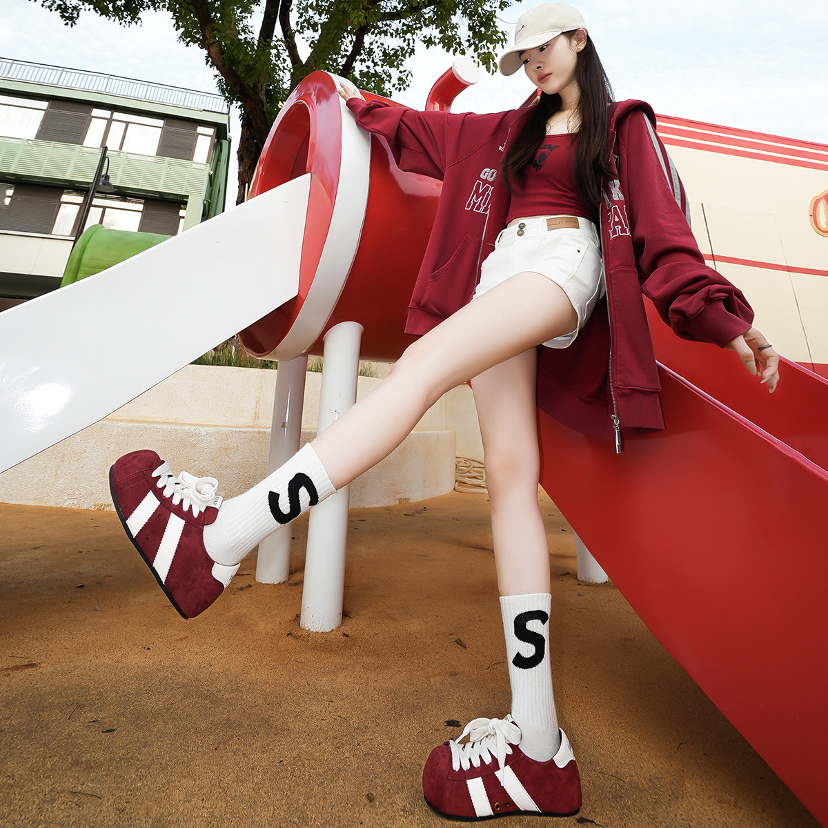 311线报网描述:F21大头内增高红色德训鞋子女2026