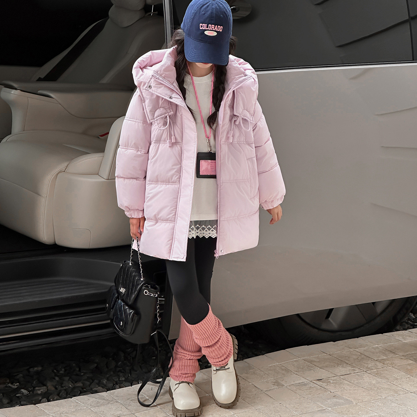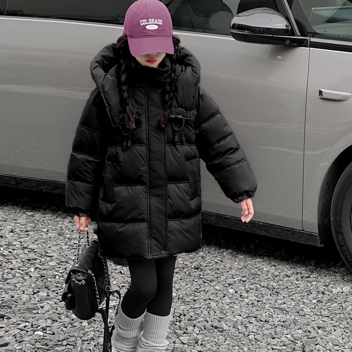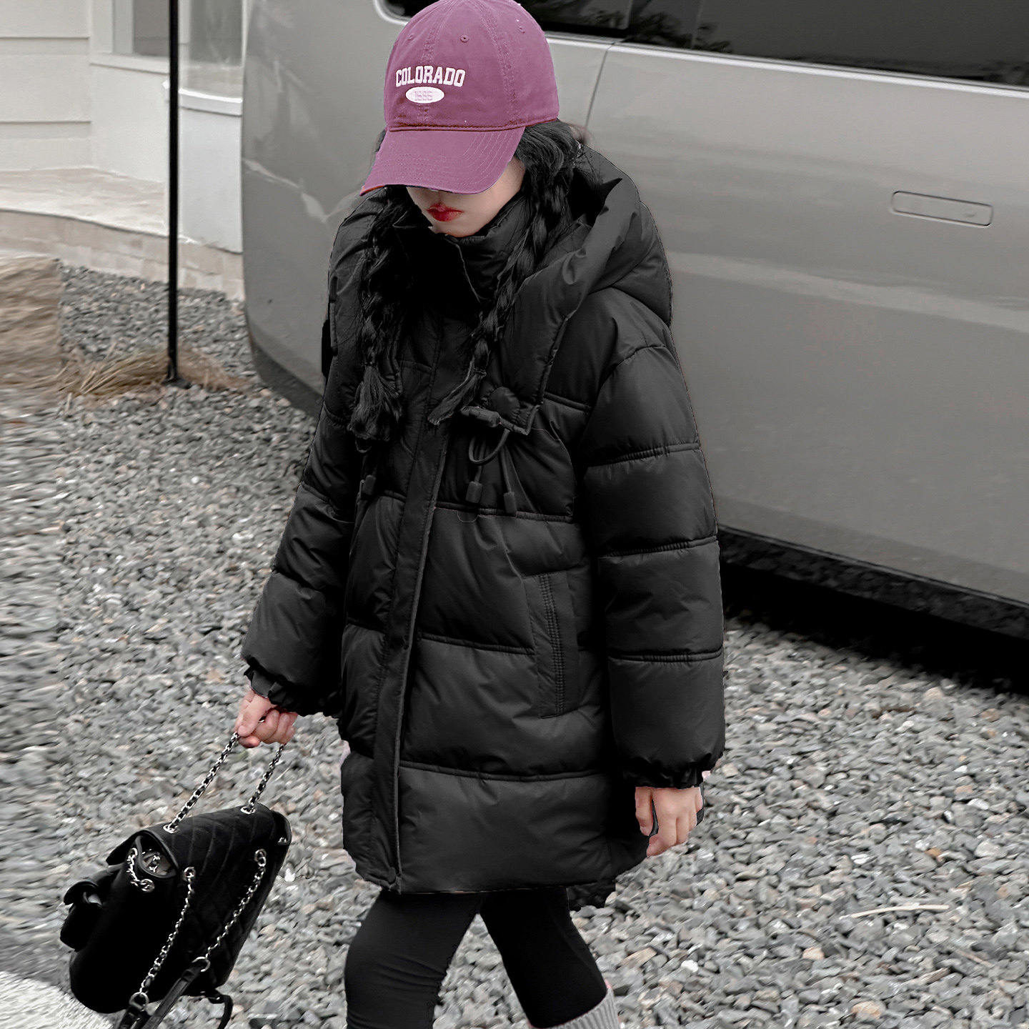 女童冬季加厚棉服2025新款中大童时髦连帽中长款洋气北海道风棉袄