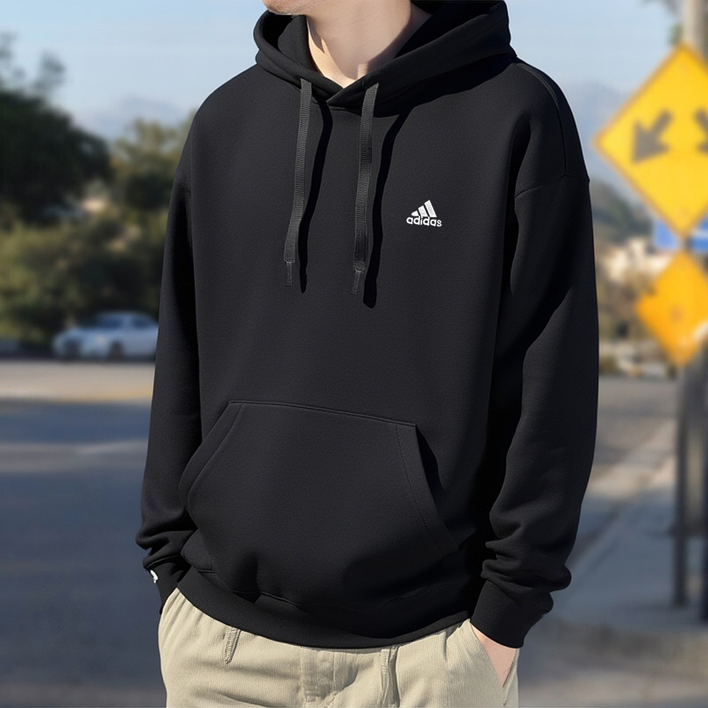 阿迪达斯连帽卫衣男冬季新款纯棉黑色运动服篮球男士宽松套头外套