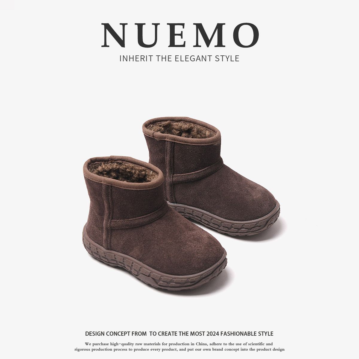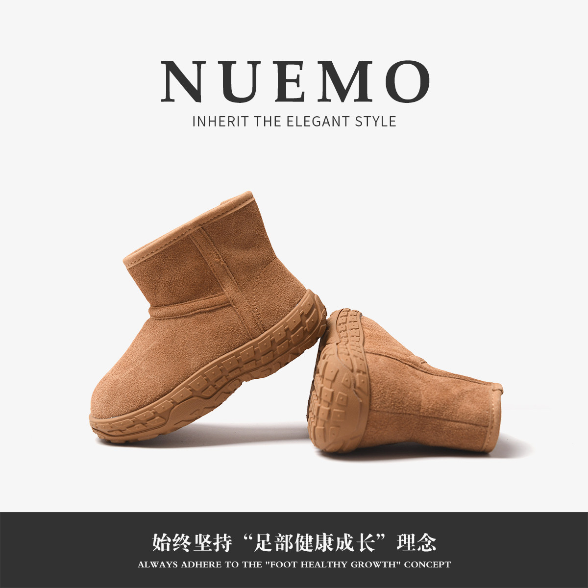 NUEMO潮童鞋~冬天儿童运动大棉靴女童真皮防滑雪地靴男童保暖棉鞋
