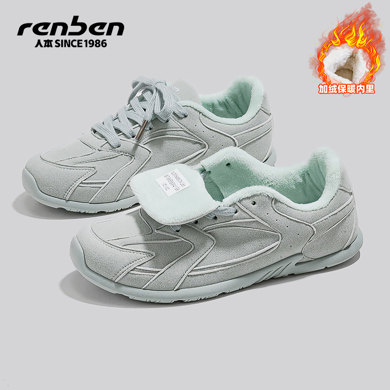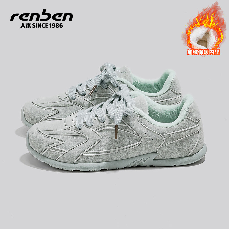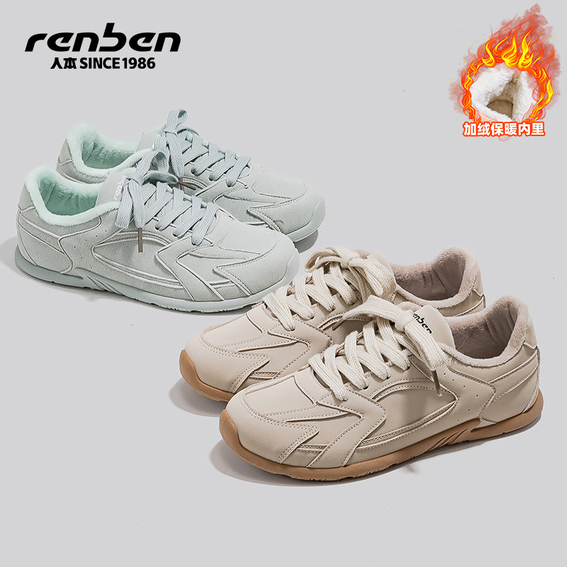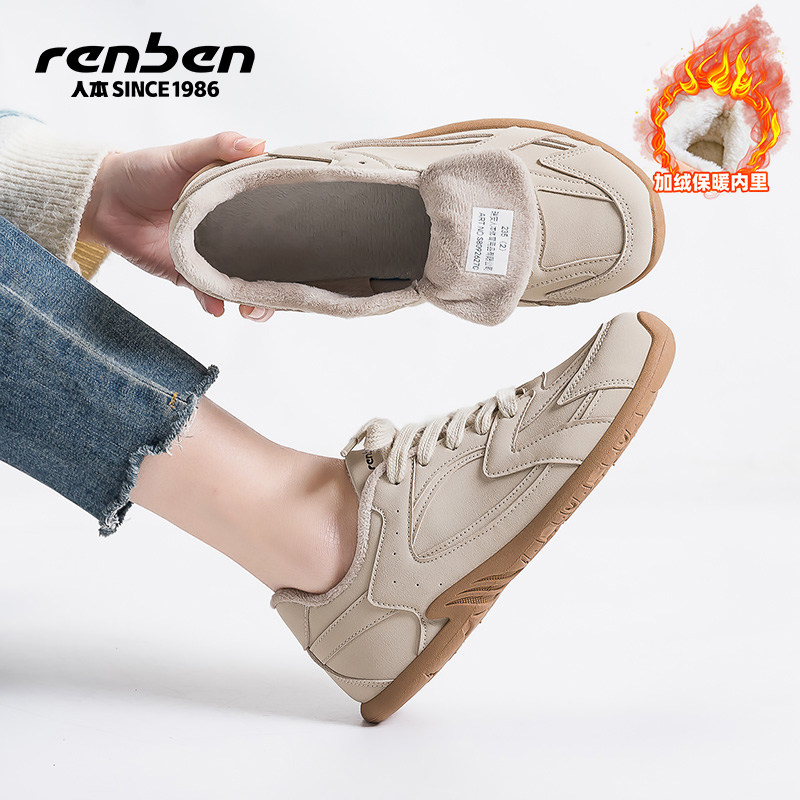 人本加绒德训鞋女款2025冬季新款保暖阿甘鞋百搭平底运动休闲板鞋