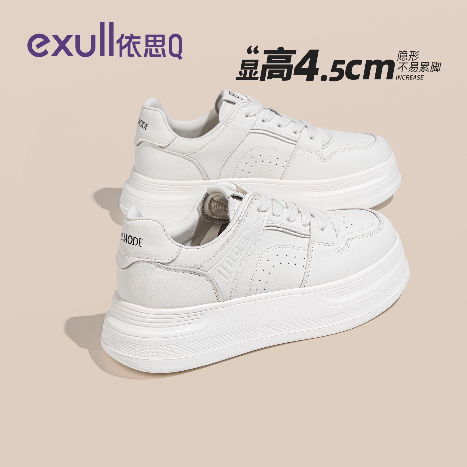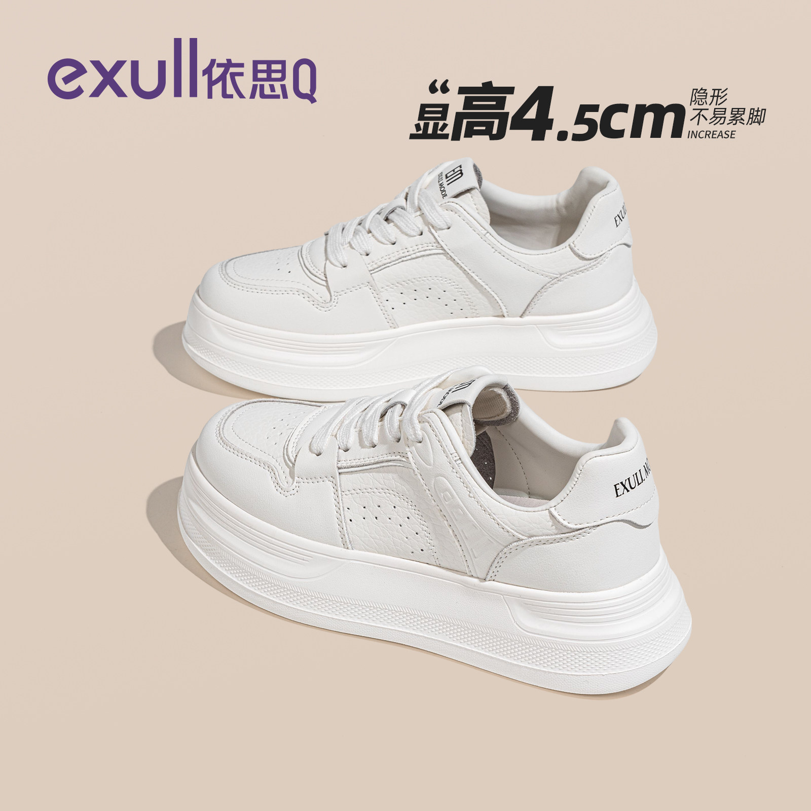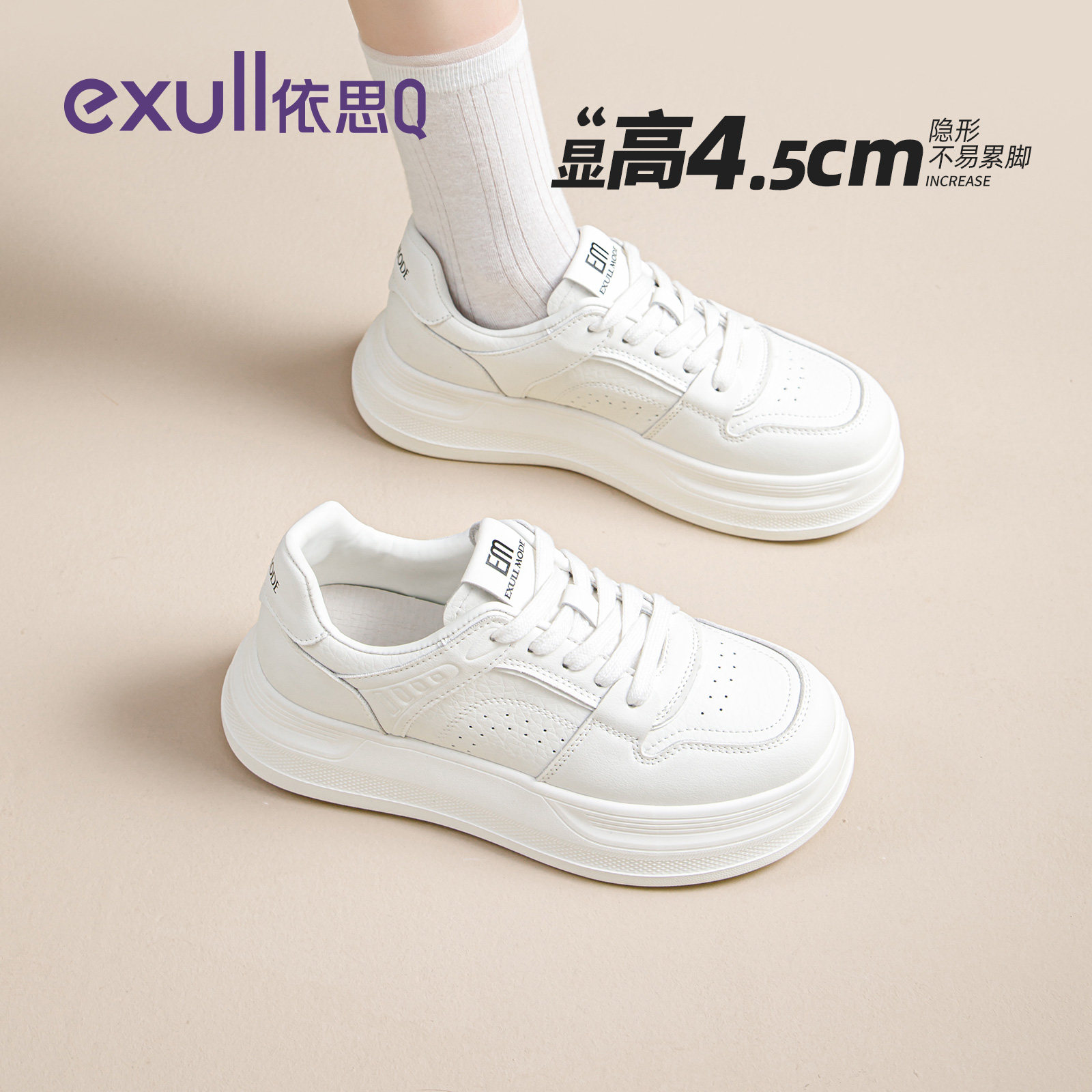 依思q厚底小白鞋女款2026春季新款白色百搭板鞋简约休闲运动女鞋