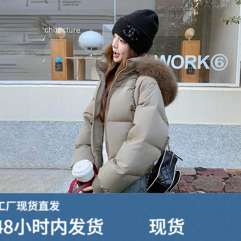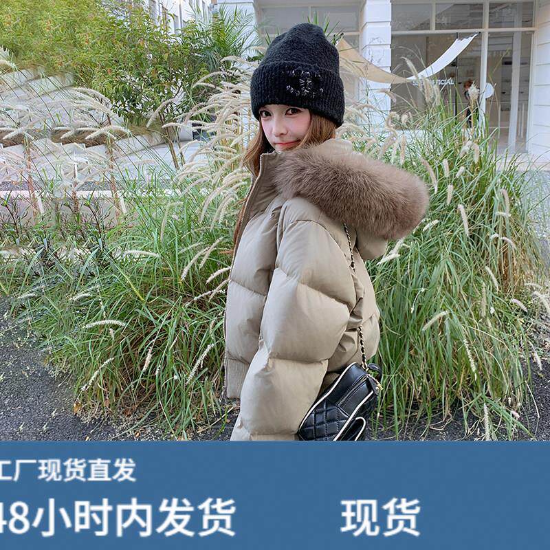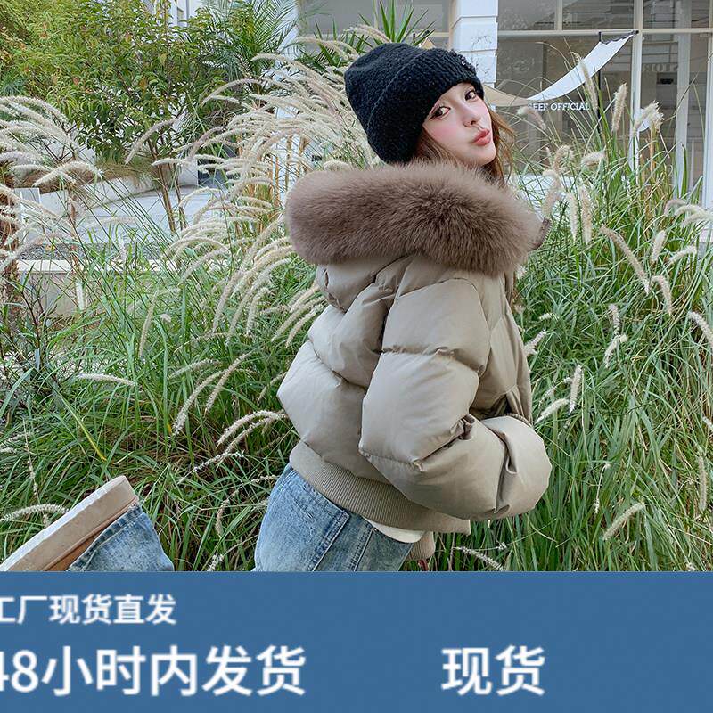 卡其色羽绒服女冬季2025新款韩版大毛领连帽90白鸭绒肯豆短款外套