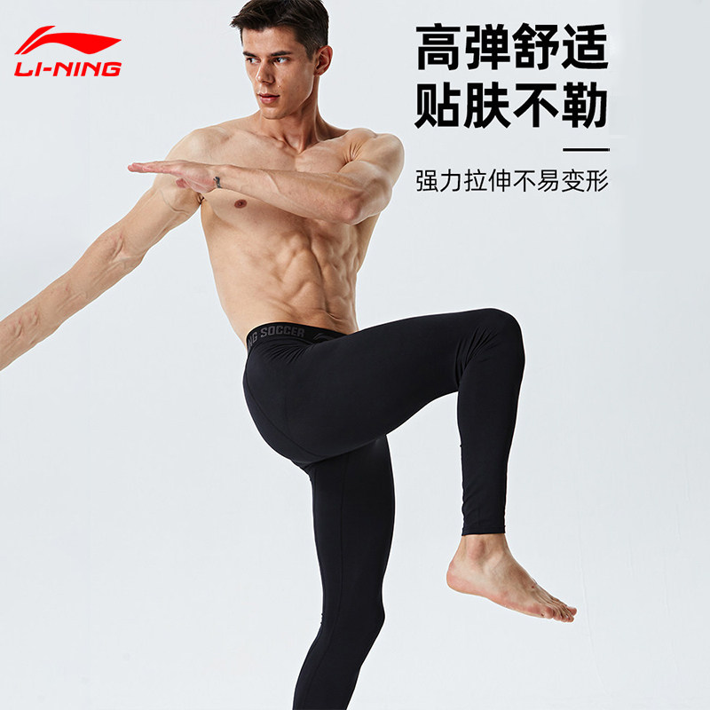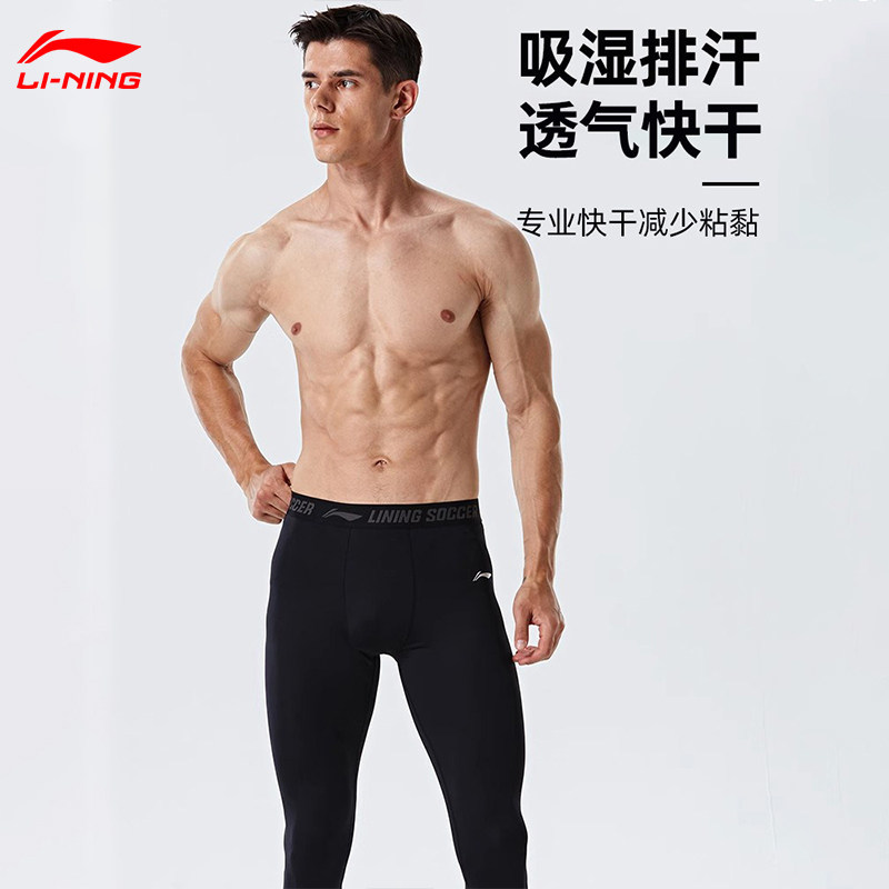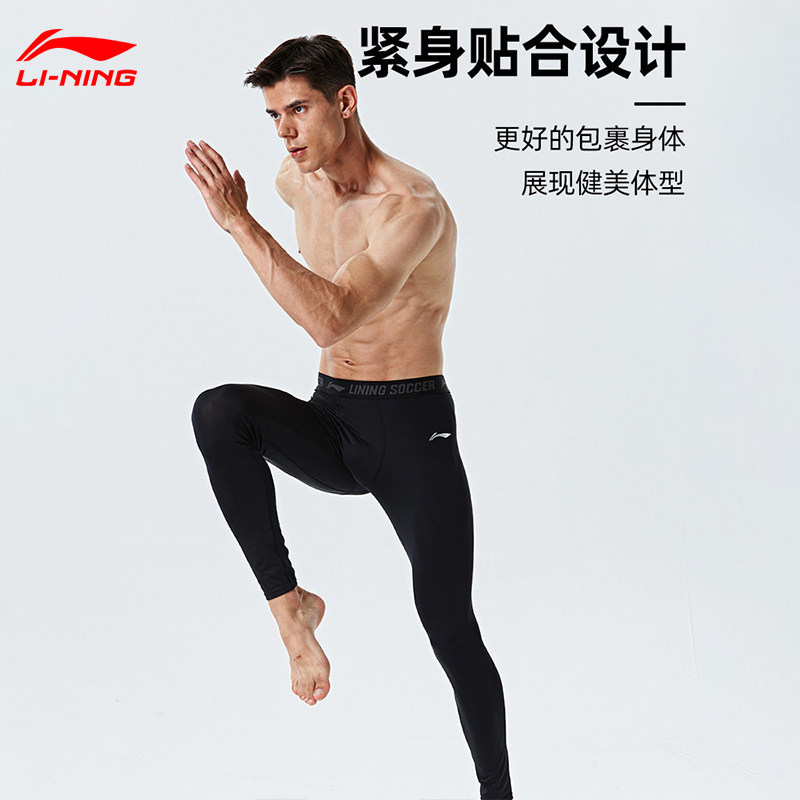 李宁紧身裤男士高弹训练裤压缩速干跑步运动健身篮球田径加绒长裤