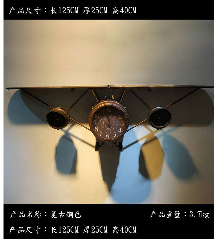 LOFT工业风美式飞机挂钟置物架创意复古酒吧墙面装饰挂件个性钟表