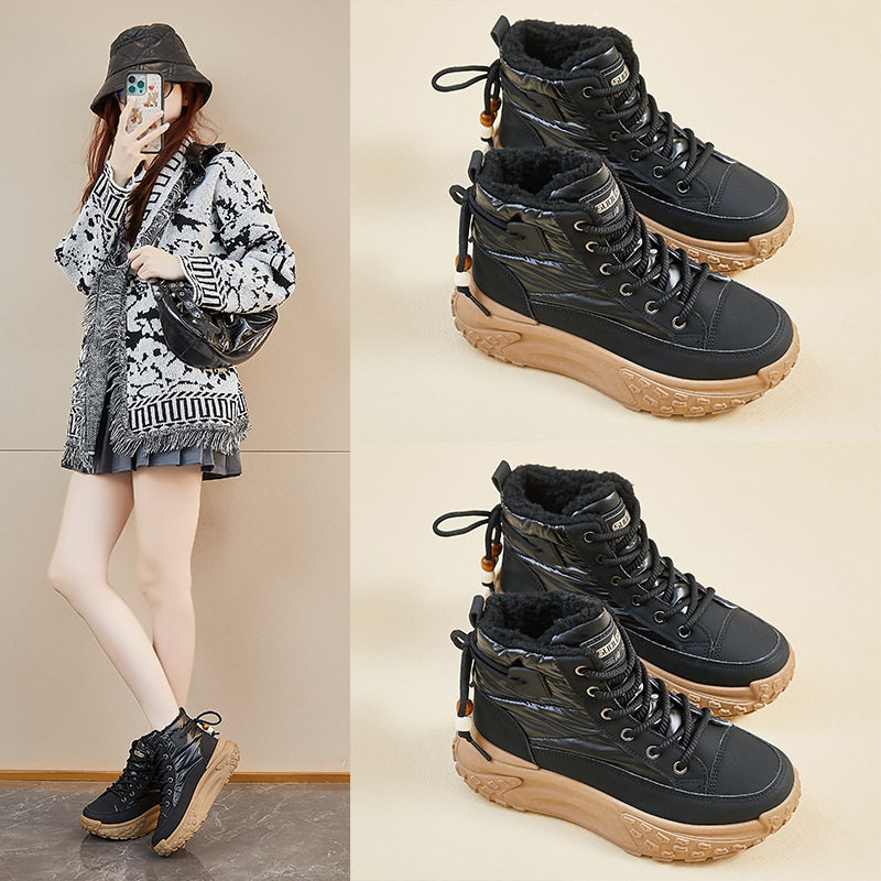 加绒高帮老爹鞋女2025冬季新款学生ins韩版保暖休闲厚底增高