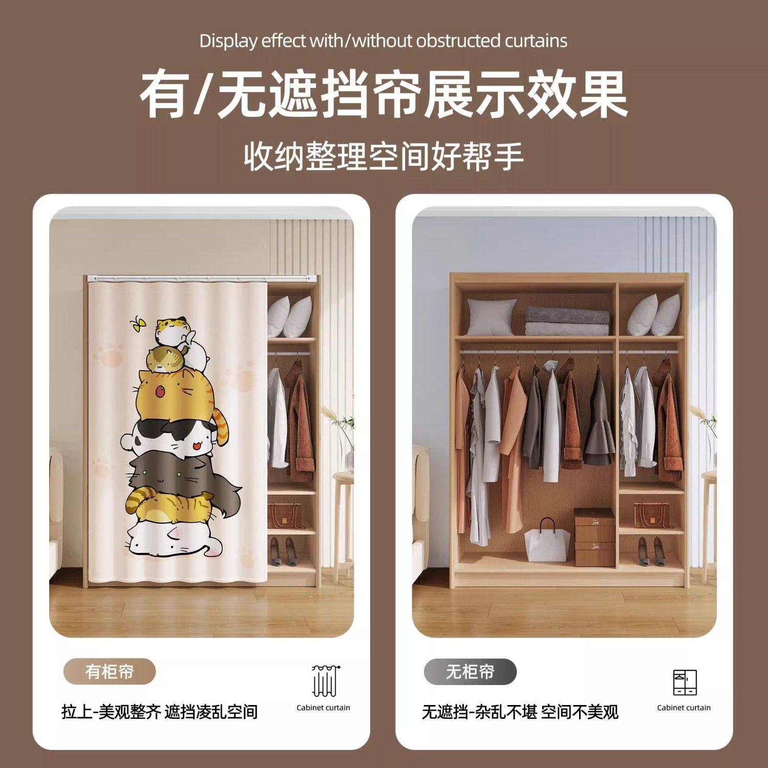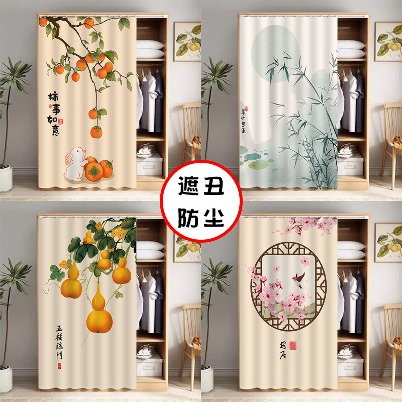衣柜防尘帘免打孔无门柜子遮挡帘书柜置物架滑轨式拉帘鞋柜遮丑帘