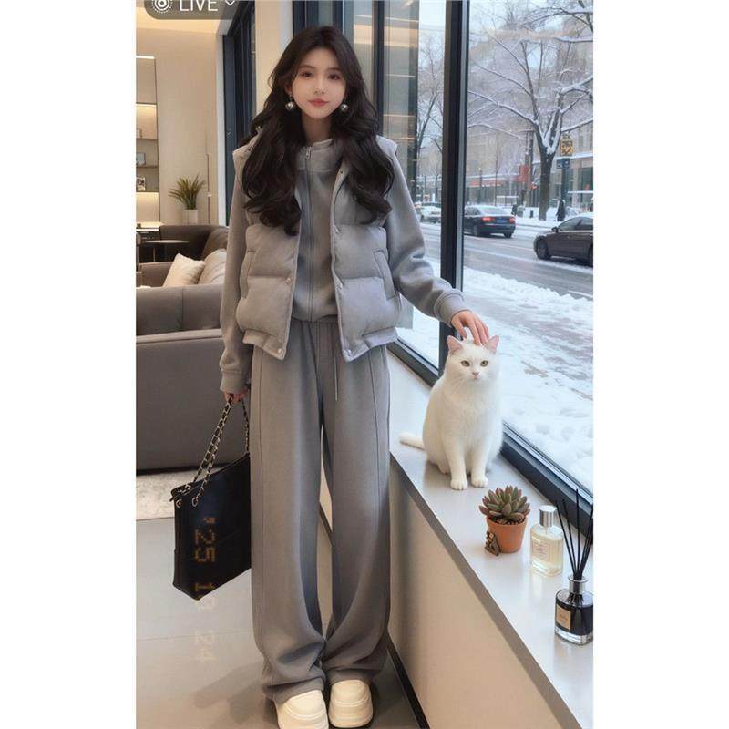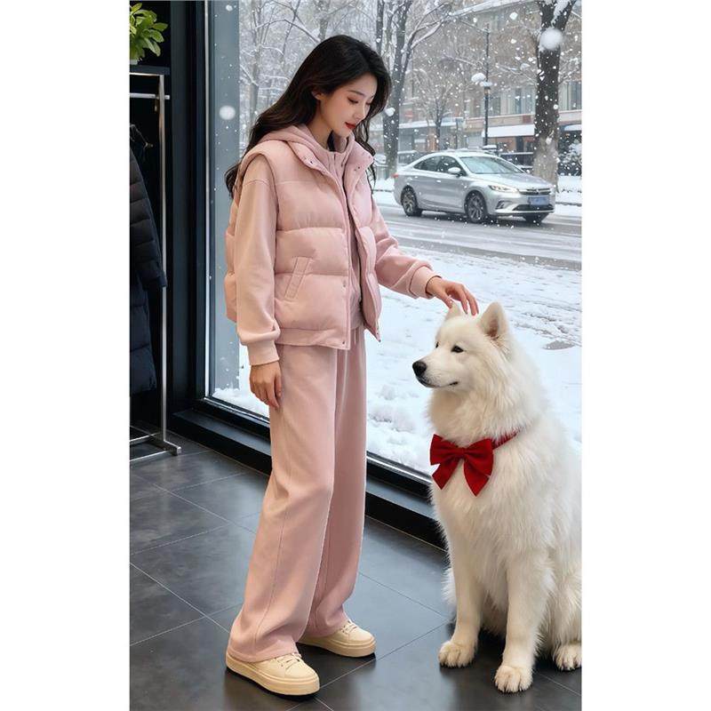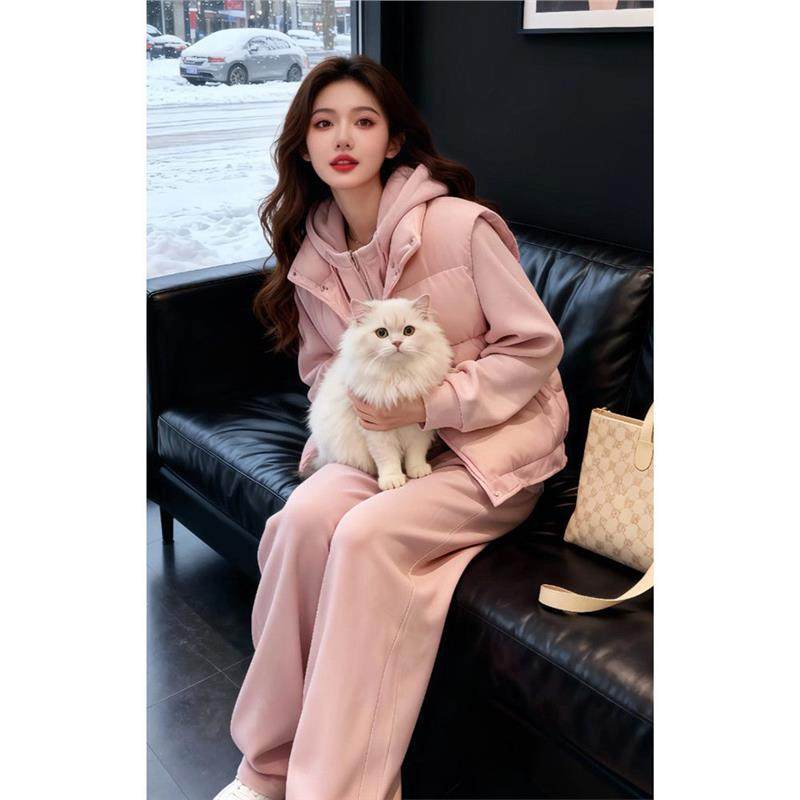 羽绒棉马甲三件套女2026冬季新款加绒加厚休闲运动套装小个子