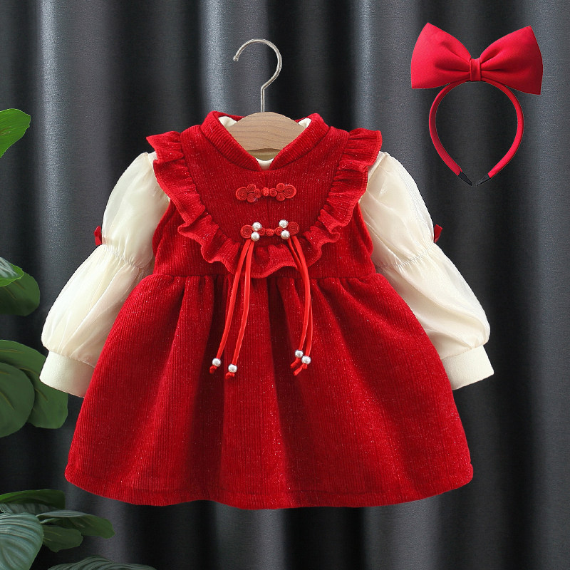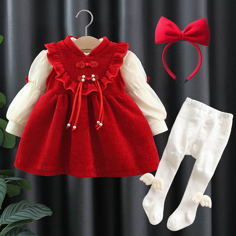 女童连衣裙秋冬装宝宝公主裙子套装婴儿衣服生日周岁礼服红色新年
