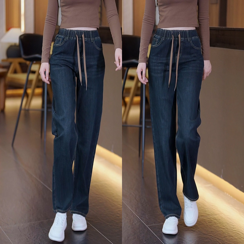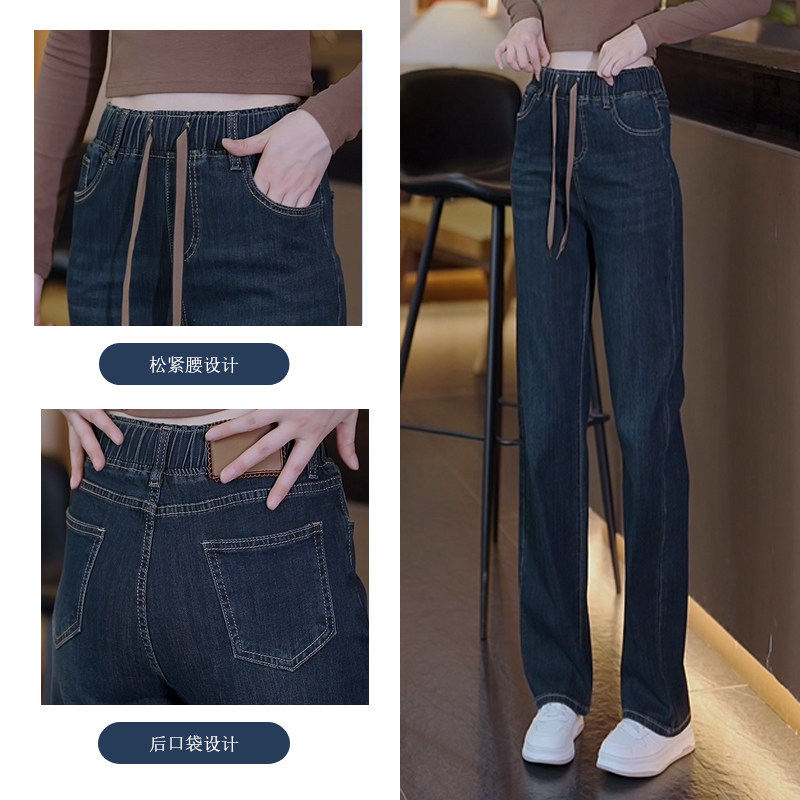 大码松紧腰牛仔裤女春季2026新款高腰窄版直筒裤拖地裤显瘦阔腿裤