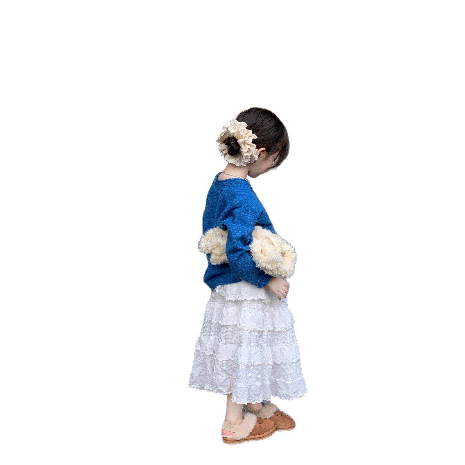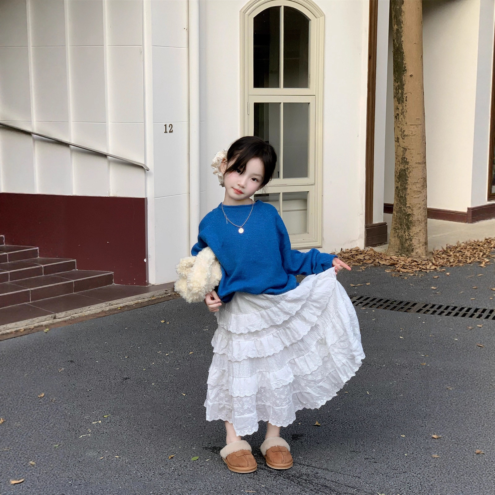 女童蓝色毛衣2026春季新款韩版儿童针织衫洋气宝宝上衣花边半身裙