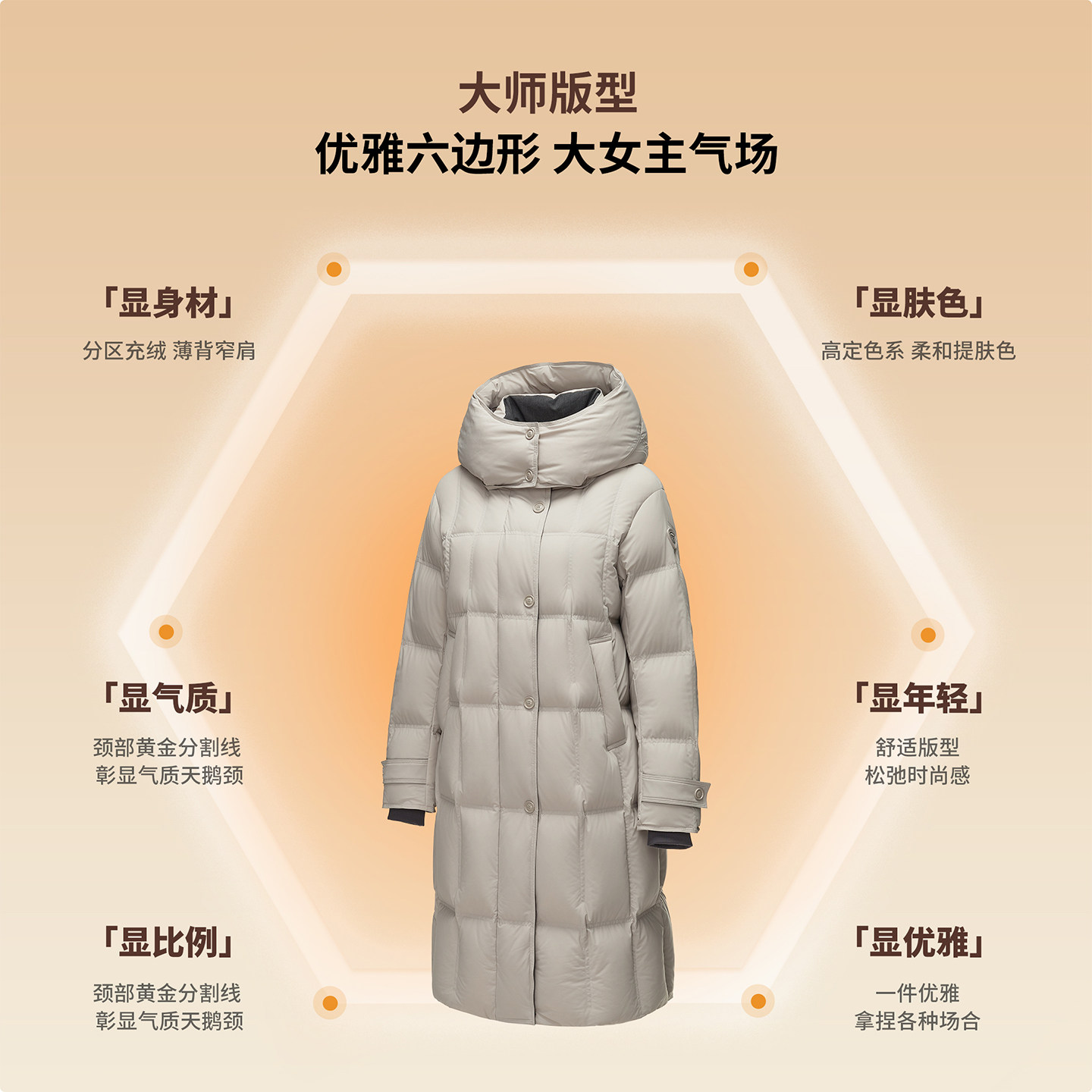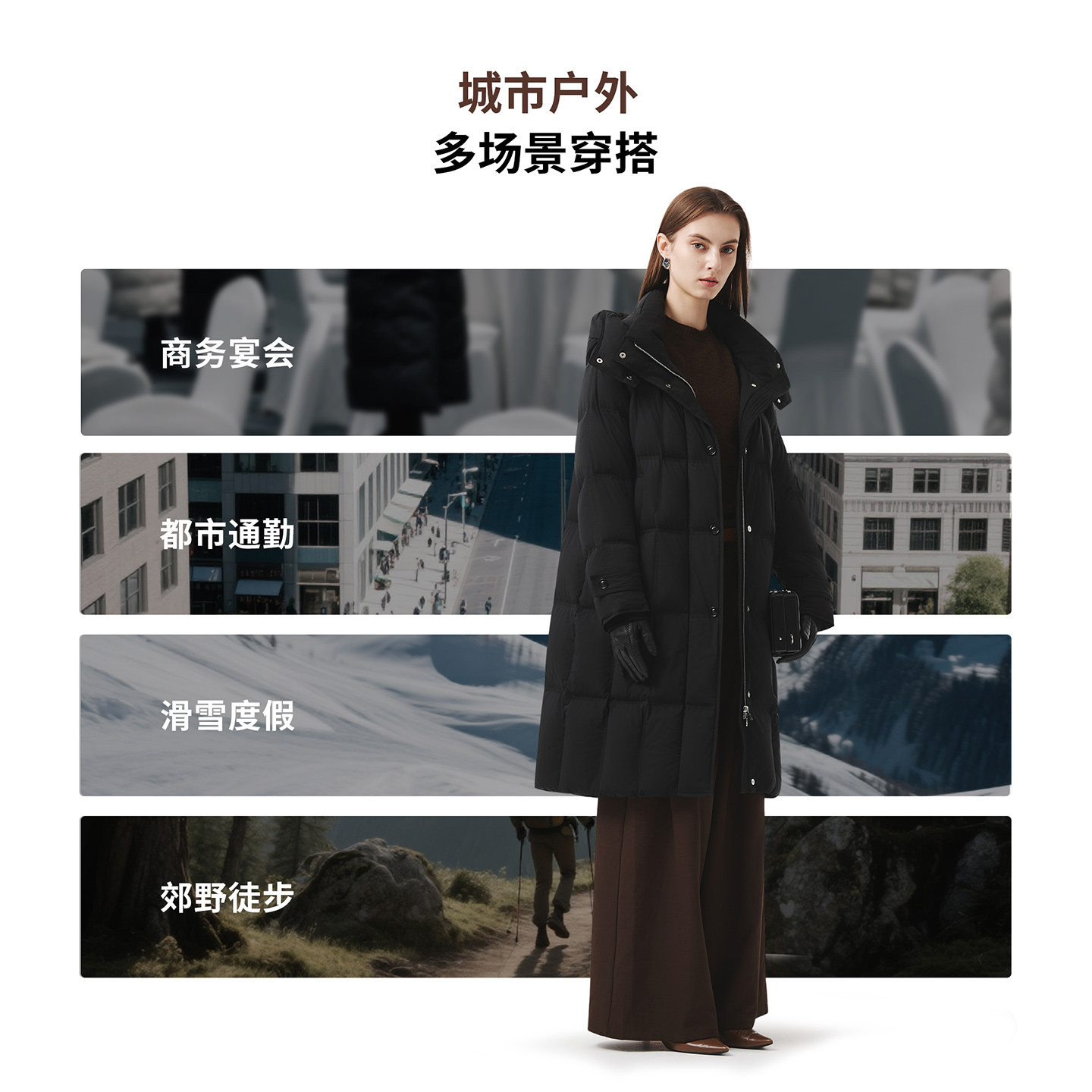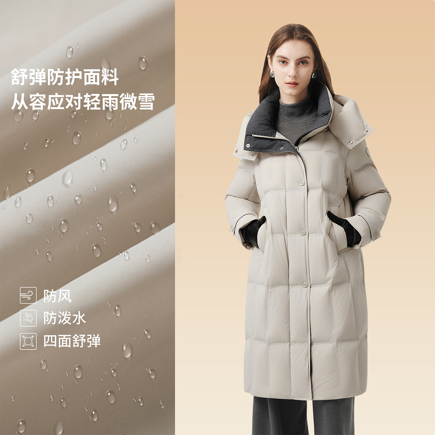 坦博尔25新款女款中长款可脱卸帽加厚保暖外套鹅绒羽绒服冬