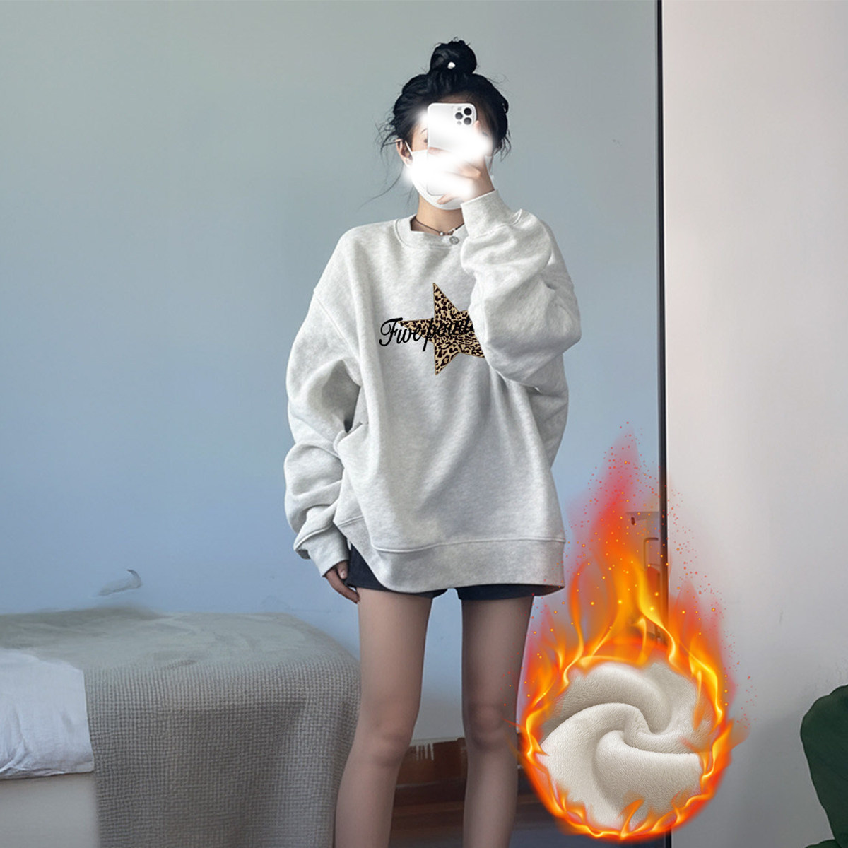 新品加绒卫衣女款加厚无帽2026新款秋冬宽松长袖圆领慵懒风上衣服