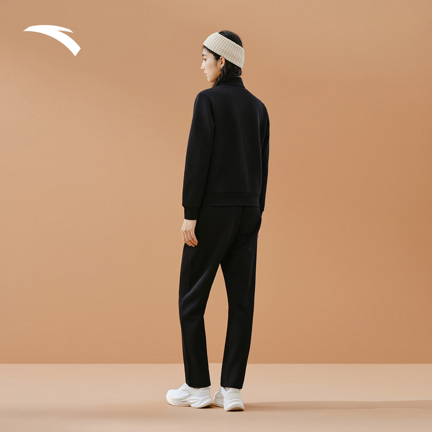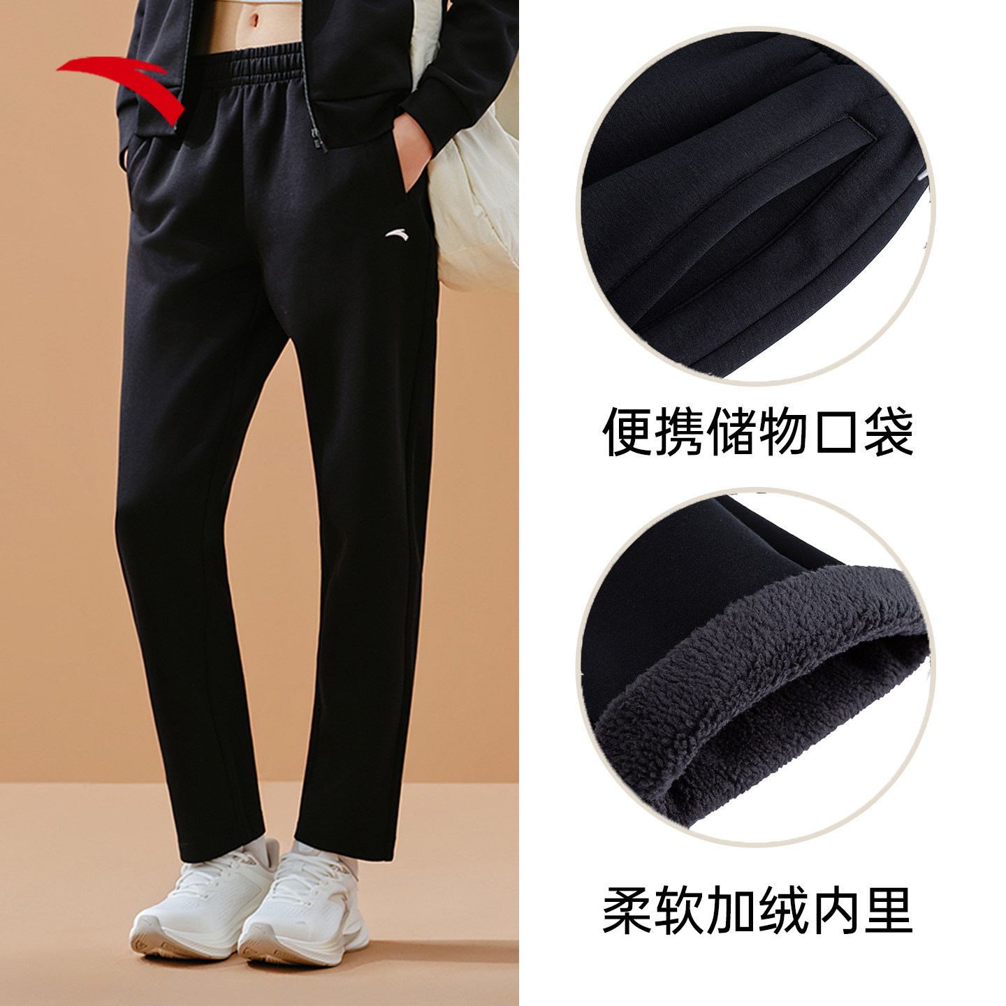 安踏加绒黑色运动套装女款卫衣外套长裤两件套女针织妈妈运动套