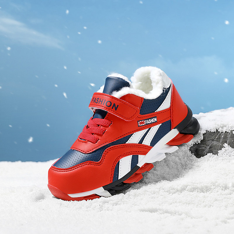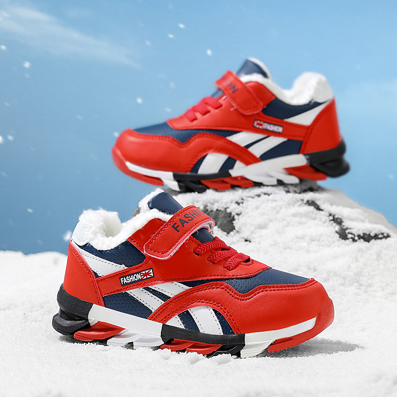男女童鞋冬天款中大童小防滑防水皮面儿童运动鞋刀锋新潮大棉保暖