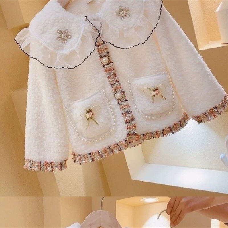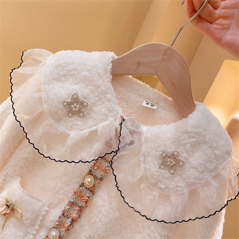 女童小香风娃娃领外套加绒加厚2025冬季新款韩版儿童公主风大衣潮