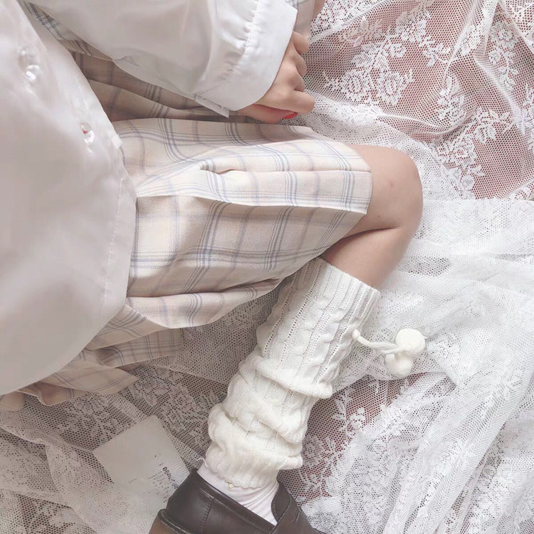 日系女袜蝴蝶结jk毛球袜套韩版百搭护膝靴套学生保暖Lolita堆堆袜
