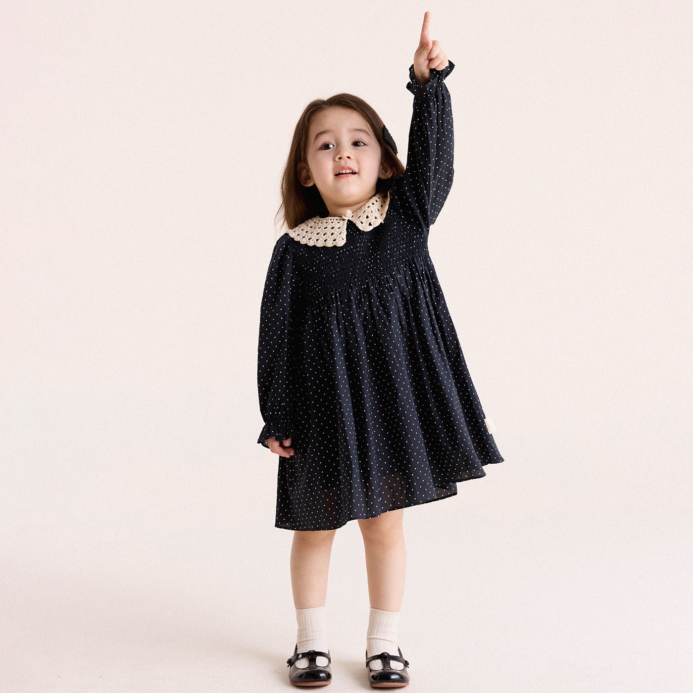 允儿妈春季新款小众针织假领子碎花连衣裙套装女孩气质波点公主裙