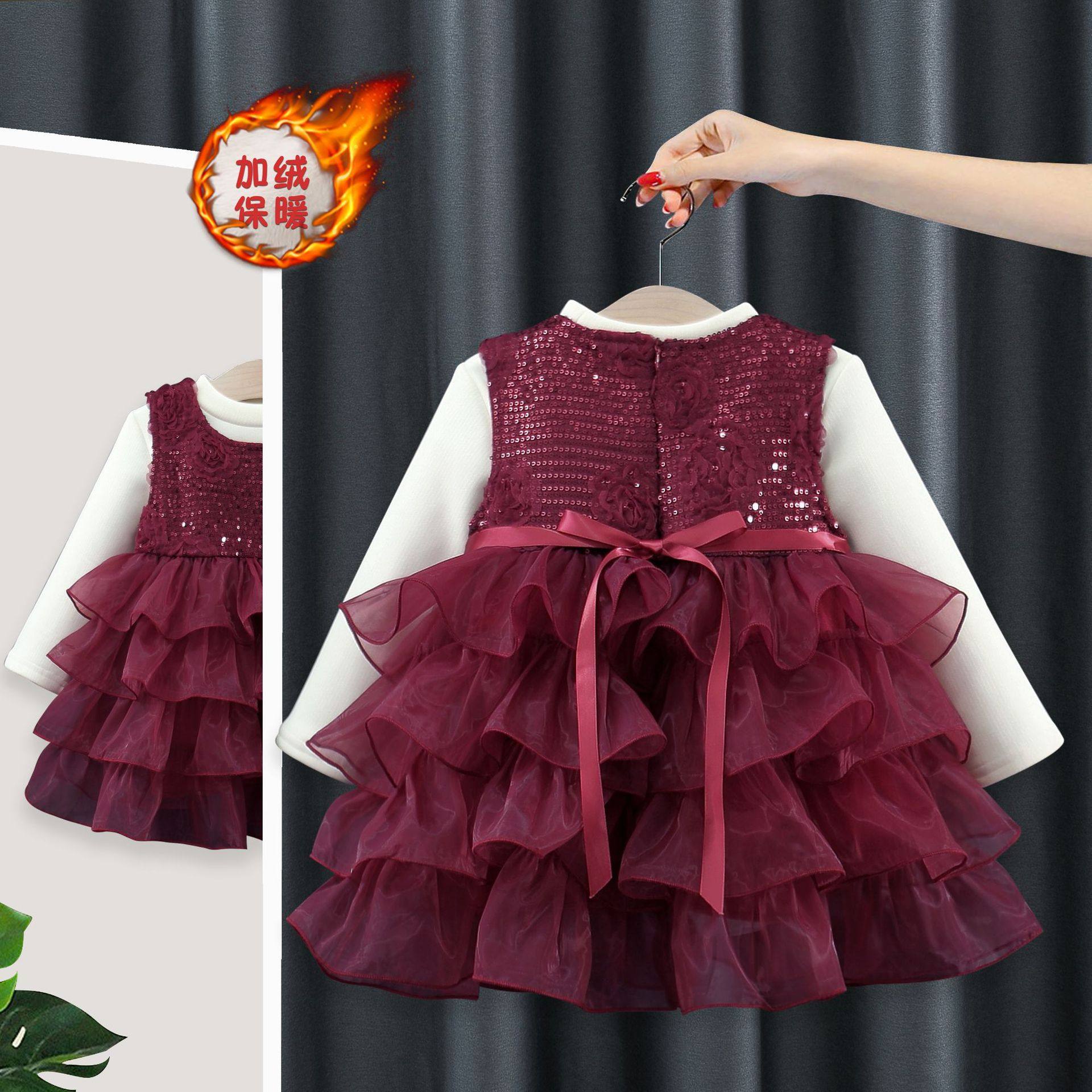 三2一1周岁女童时尚套装洋气时髦裙子女宝宝红色连衣裙加绒小女孩