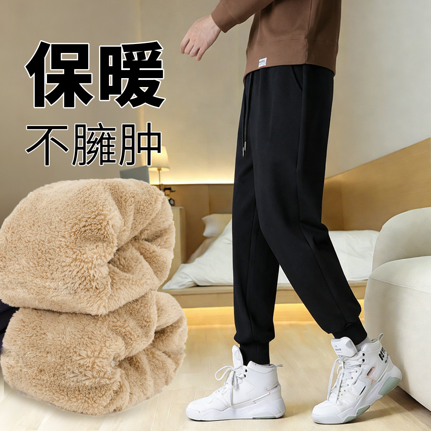 加绒运动裤男羊羔绒冬季男款加厚裤子宽松休闲裤棉裤秋冬束脚卫裤