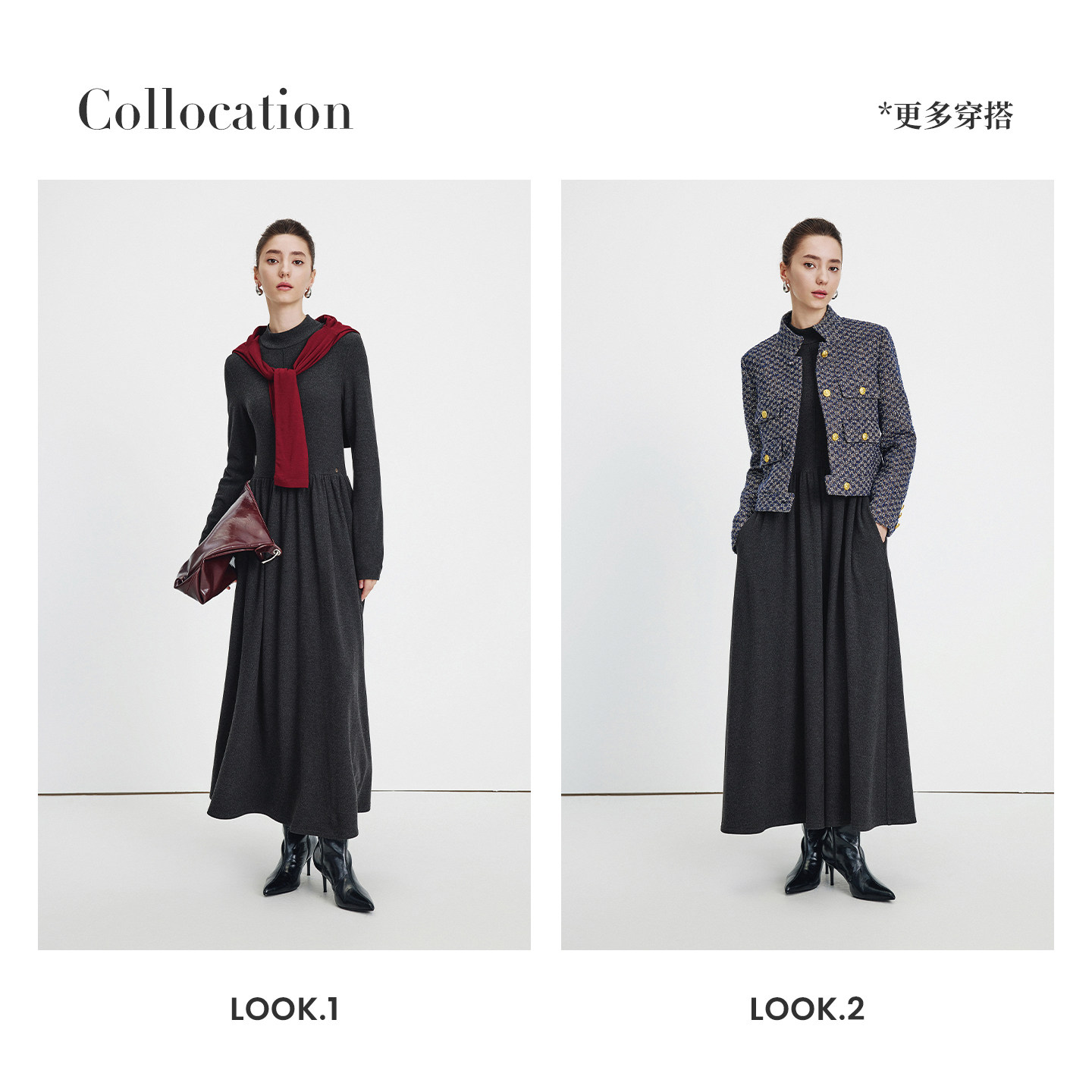 Navigare意大利小帆船长袖连衣裙女士轻奢高级感2025秋季新款长裙