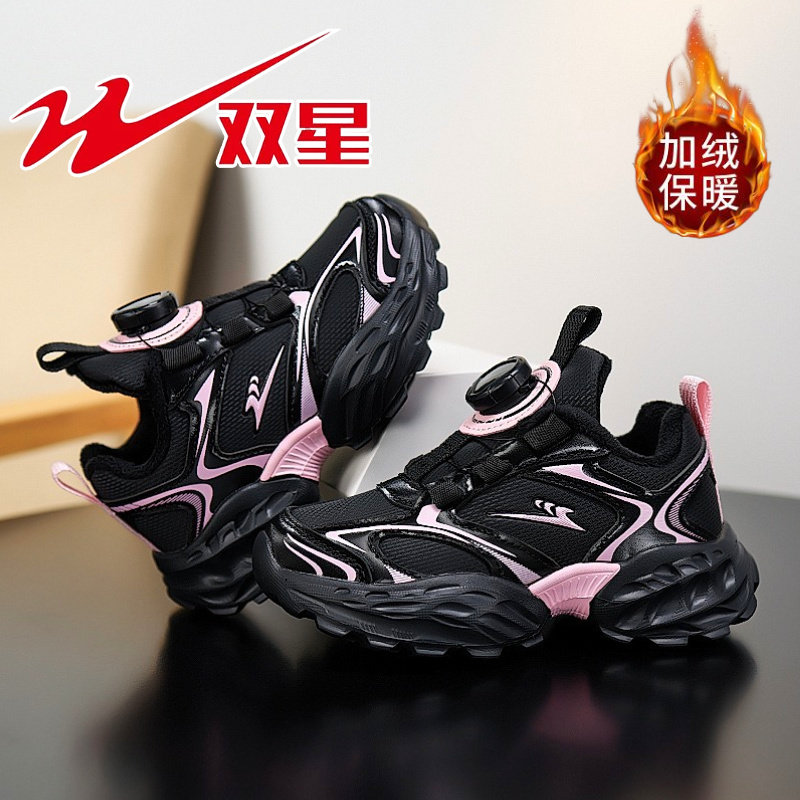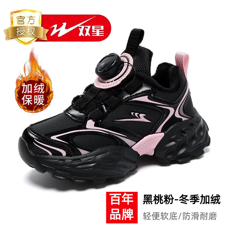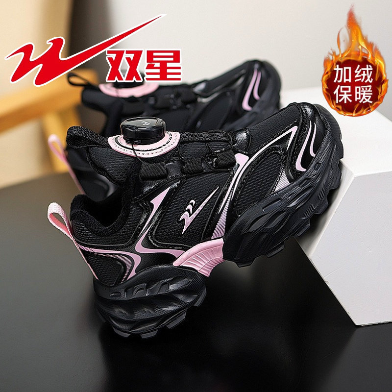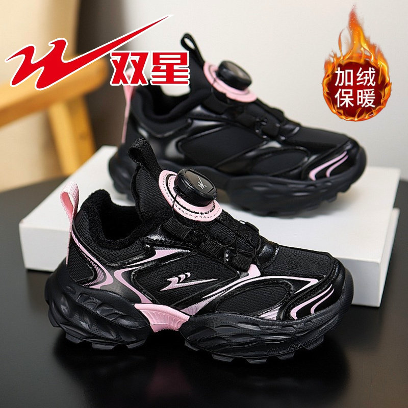 双星女童二棉鞋2025秋冬新款皮面黑色运动鞋儿童冬季加绒保暖棉鞋