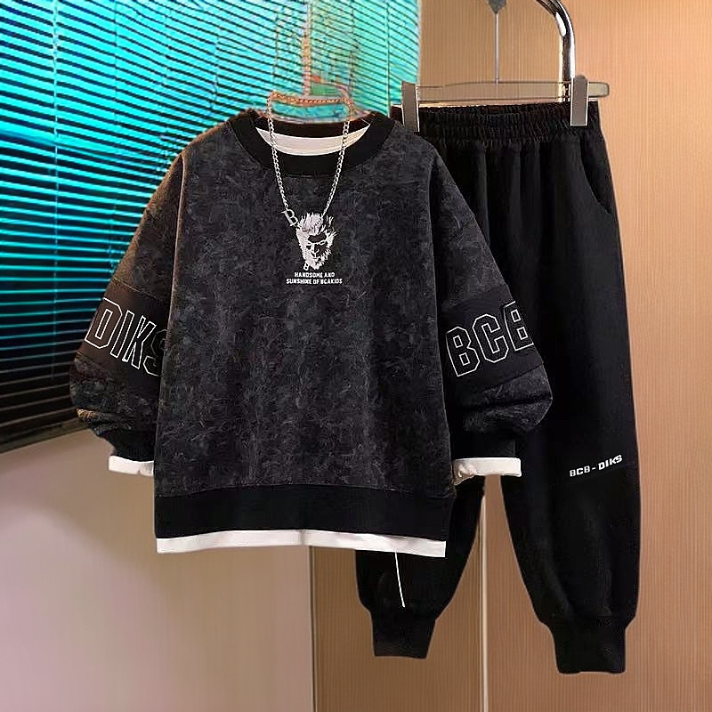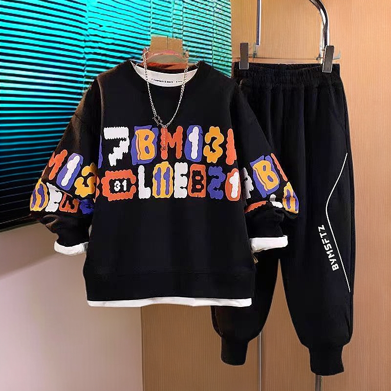 胖男童套装拜年服胖童加肥加大中大童本命年胖孩子红色卫衣两件套