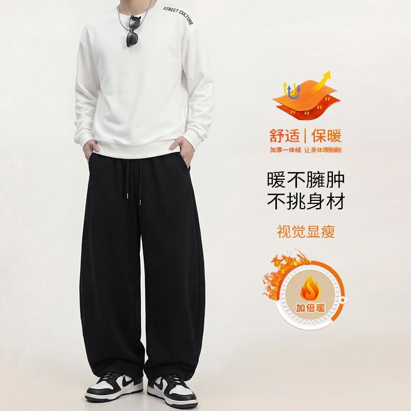 弯刀裤子男款秋冬直筒裤宽松休闲裤男士加绒加厚新款冬季运动裤男
