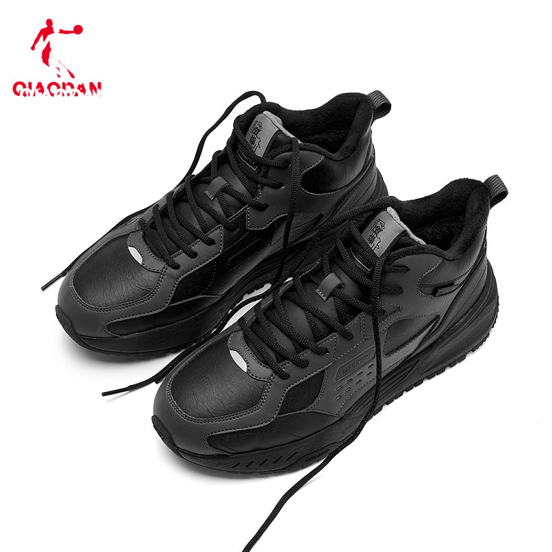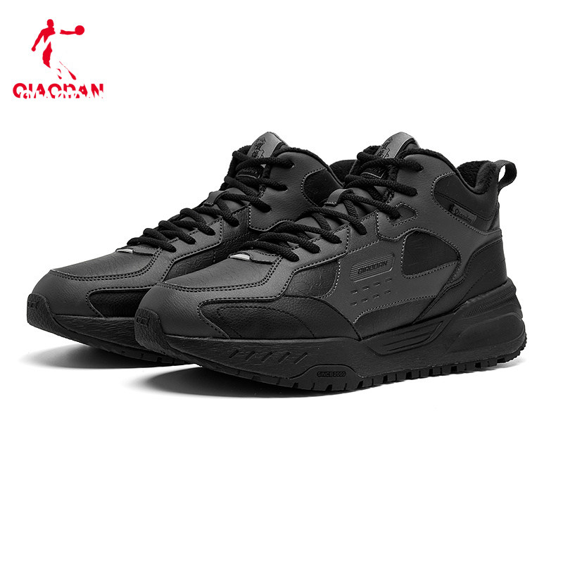 乔丹高帮加绒保暖棉鞋男2025冬季新品革面防水休闲鞋黑色运动鞋子