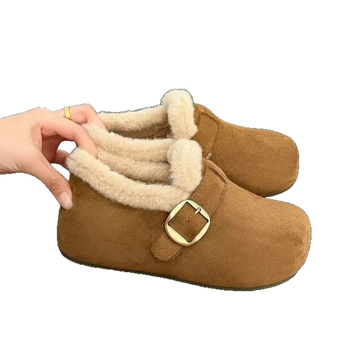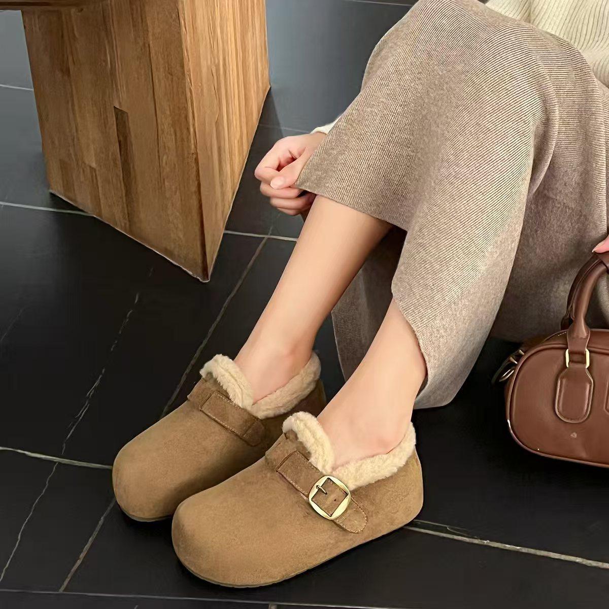 加绒保暖厚底复古磨砂勃肯女鞋全包2025冬季新款内增高雪地靴棉鞋