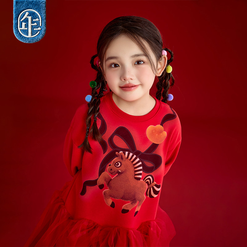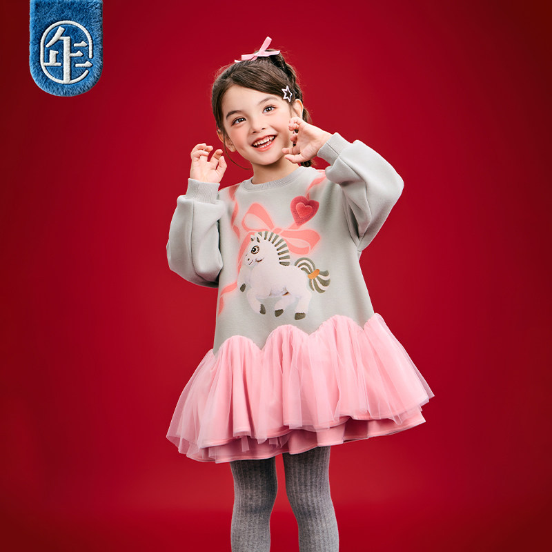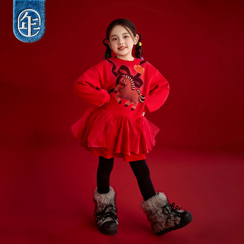年衣童装长袖连衣裙冬季新款女童加厚生肖马年蓬蓬裙新年礼服拜年