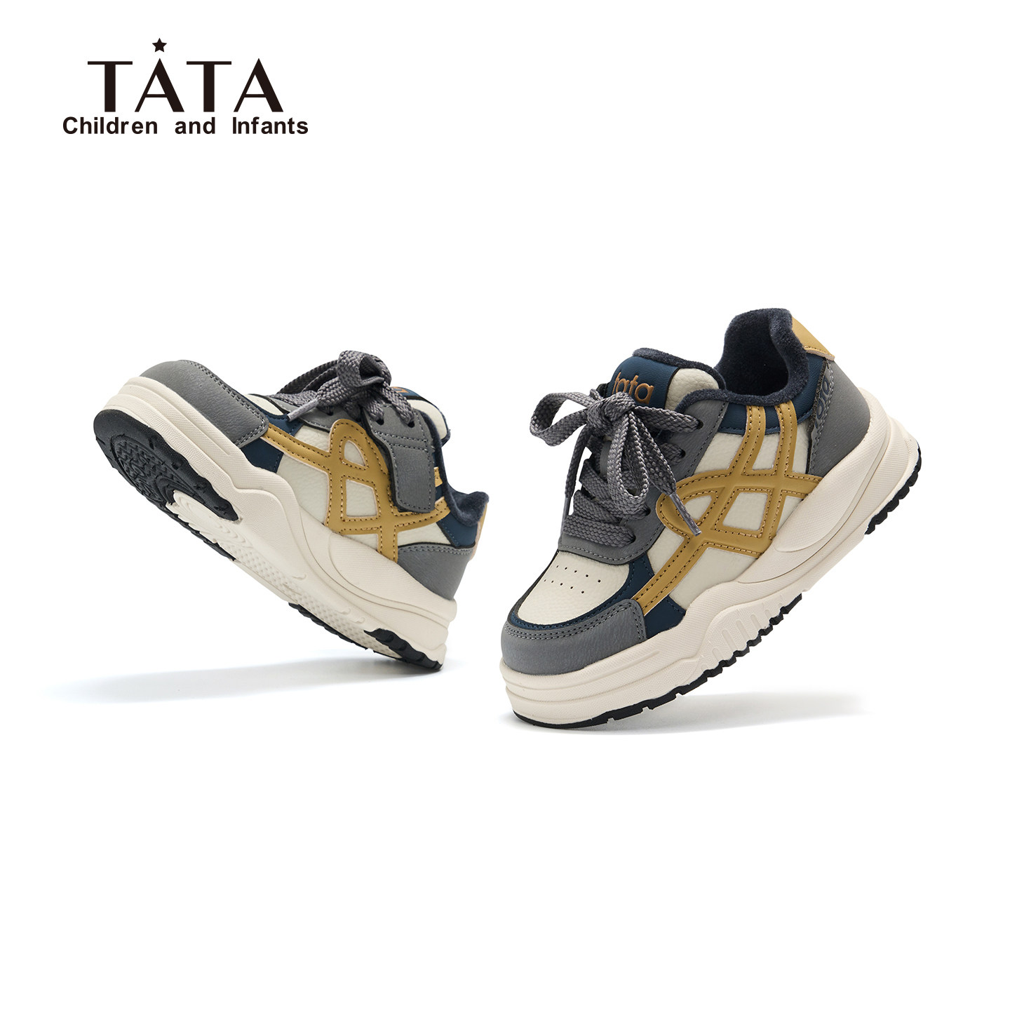 TATA他她童鞋女童板鞋冬款中大童男童保暖加绒防滑运动滑板鞋棉鞋