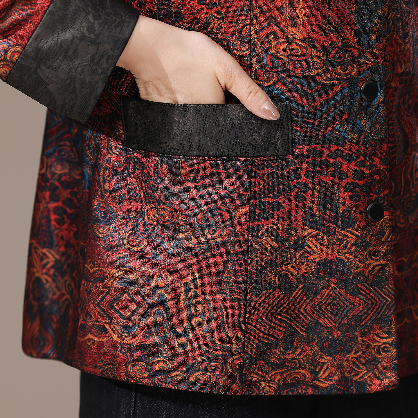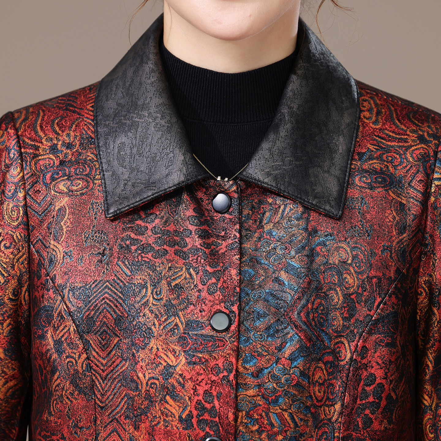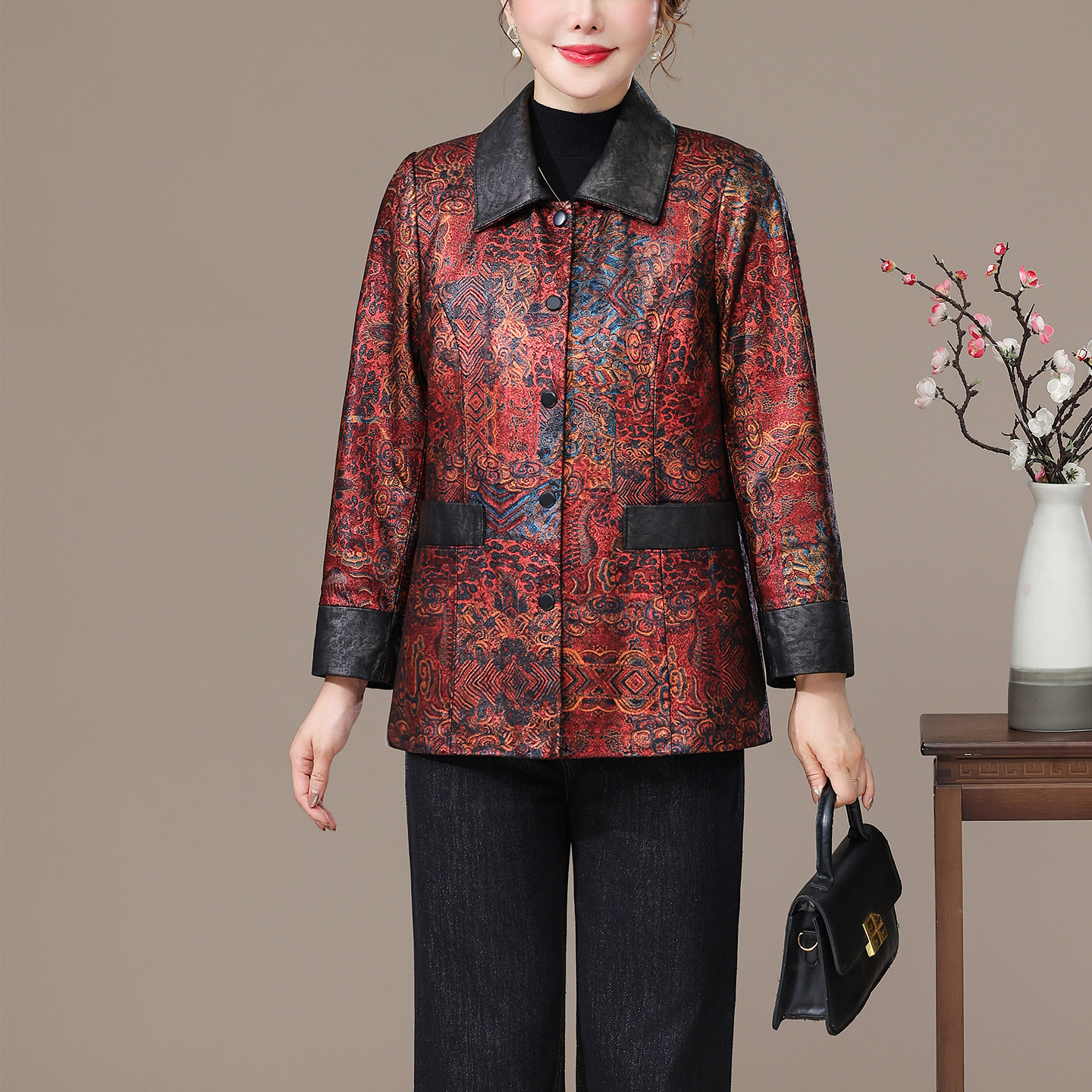 海宁绵羊皮真皮皮衣女短款妈妈装2025秋冬新款中国风压花夹克外套