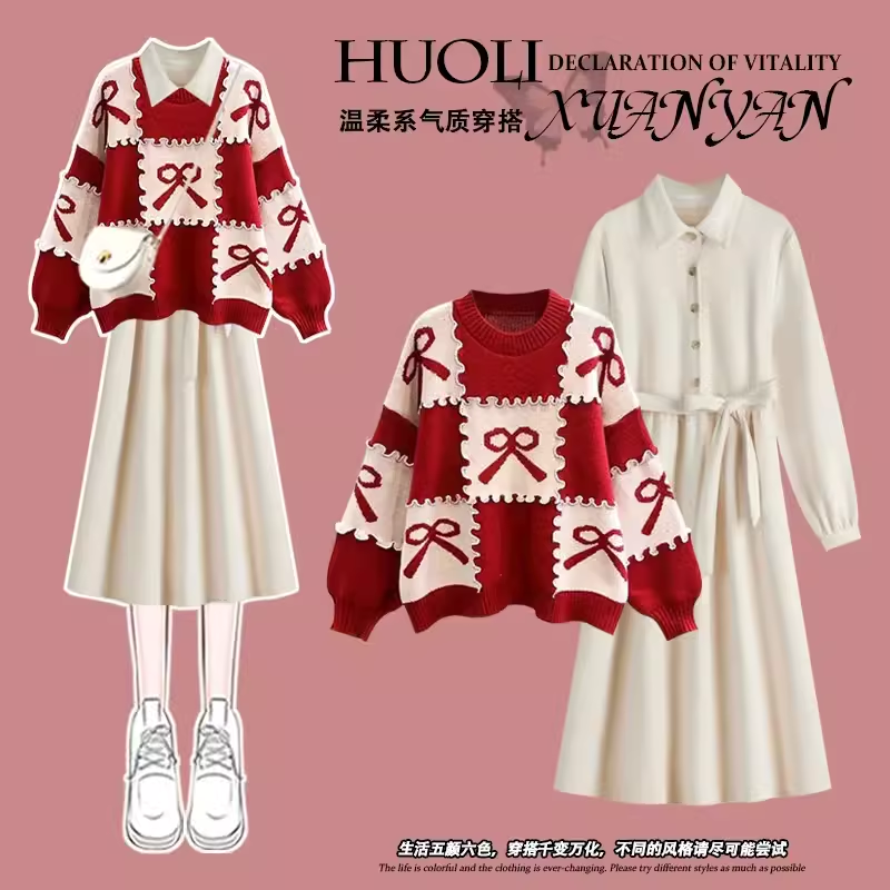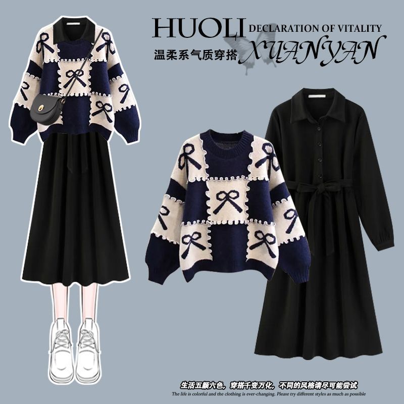 小香风时尚套装女童2025秋冬装新款毛衣中大童洋气时髦连衣裙子潮