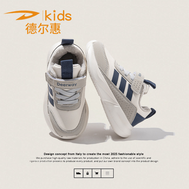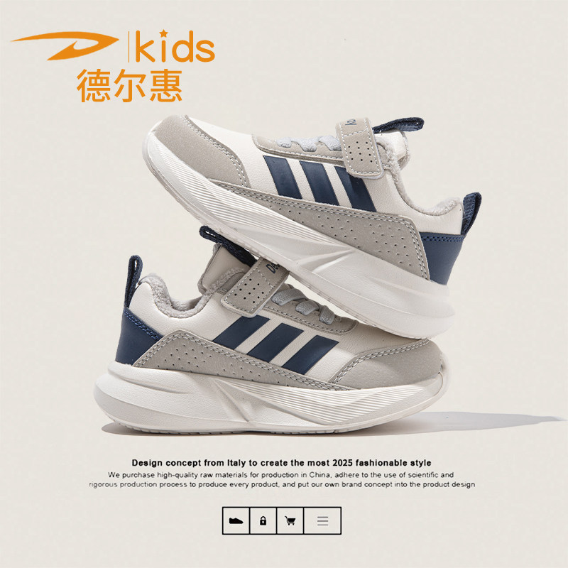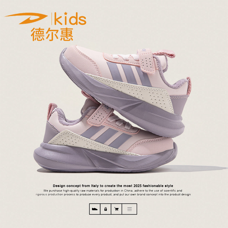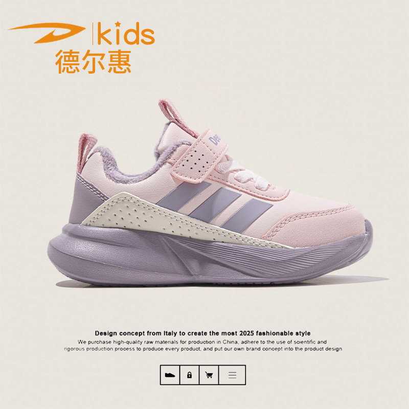 德尔惠儿童加绒保暖运动鞋冬季新款皮面男童休闲鞋女童跑步鞋防滑