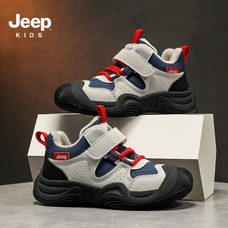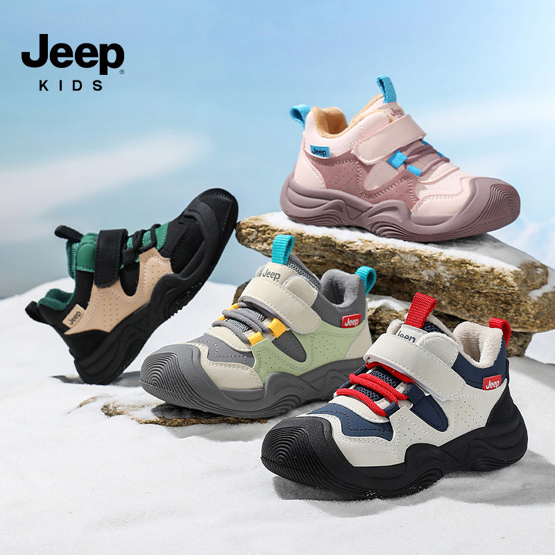Jeep童鞋冬季儿童二棉鞋女童鞋子加绒加厚运动鞋男童防滑防水冬鞋